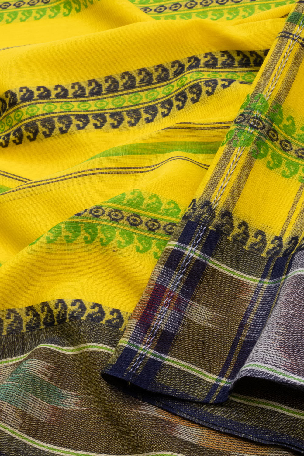 Wrap yourself in the vibrant charm of the Green Thousand Buttas Chettinad Cotton Saree. Crafted from breathable cotton, it features delicate peacock motifs that add a dash of whimsy and grace. Perfect for sunny days or festive ...