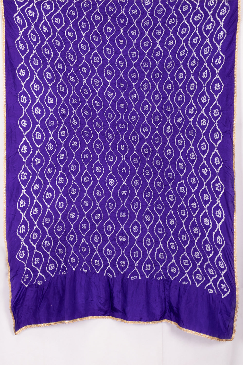 Elevate your traditional attire with our Blue Bandhani Gajji Silk Dupatta! The intricate Gaji Gharchola pattern and contrast border add a touch of elegance. The dupatta also features exquisite bead edging for a glamorous finish...