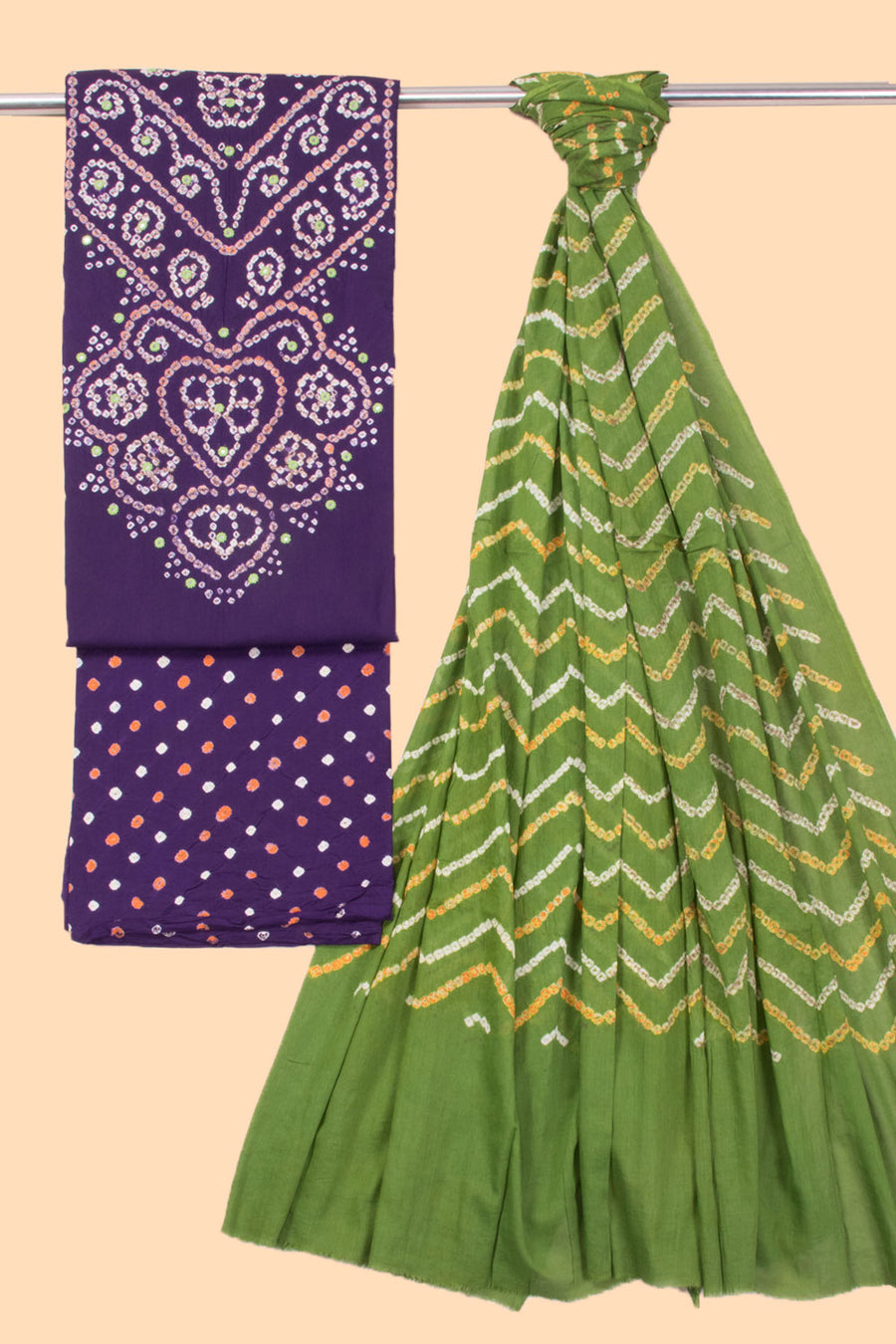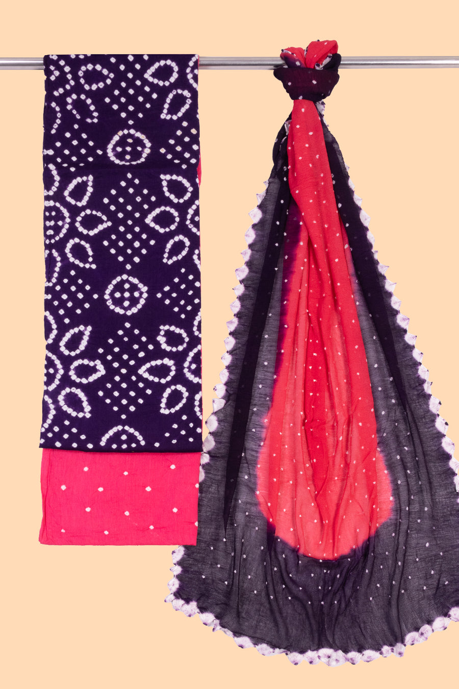 Purple Bandhani Cotton 3-Piece Salwar Suit Material This lightweight and breathable material is perfect for staying comfortable during hot summer days - ideal for any occasion you have in mind.
