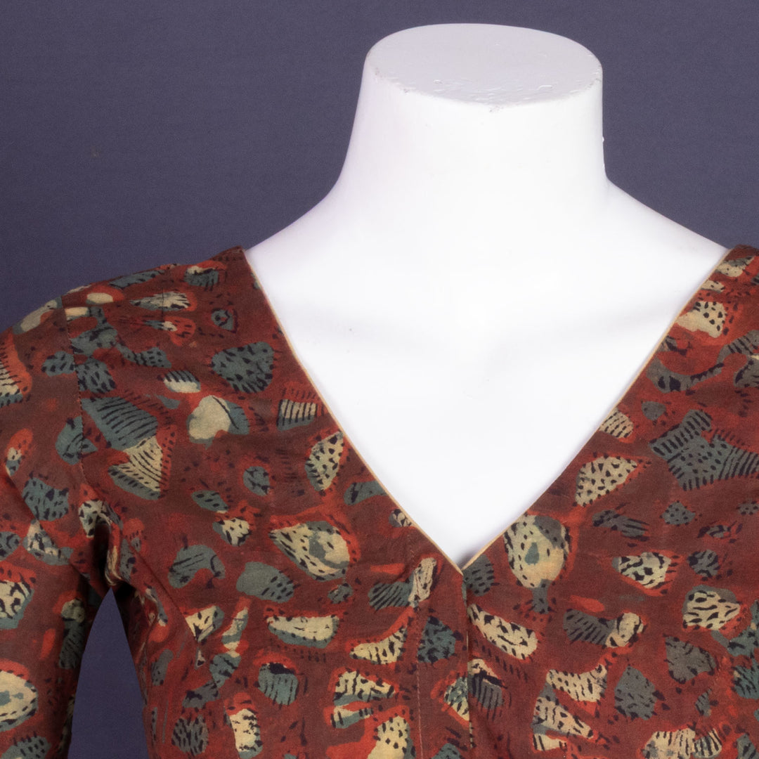 Maroon Hand Block Jahota Printed Cotton Blouse 10074995