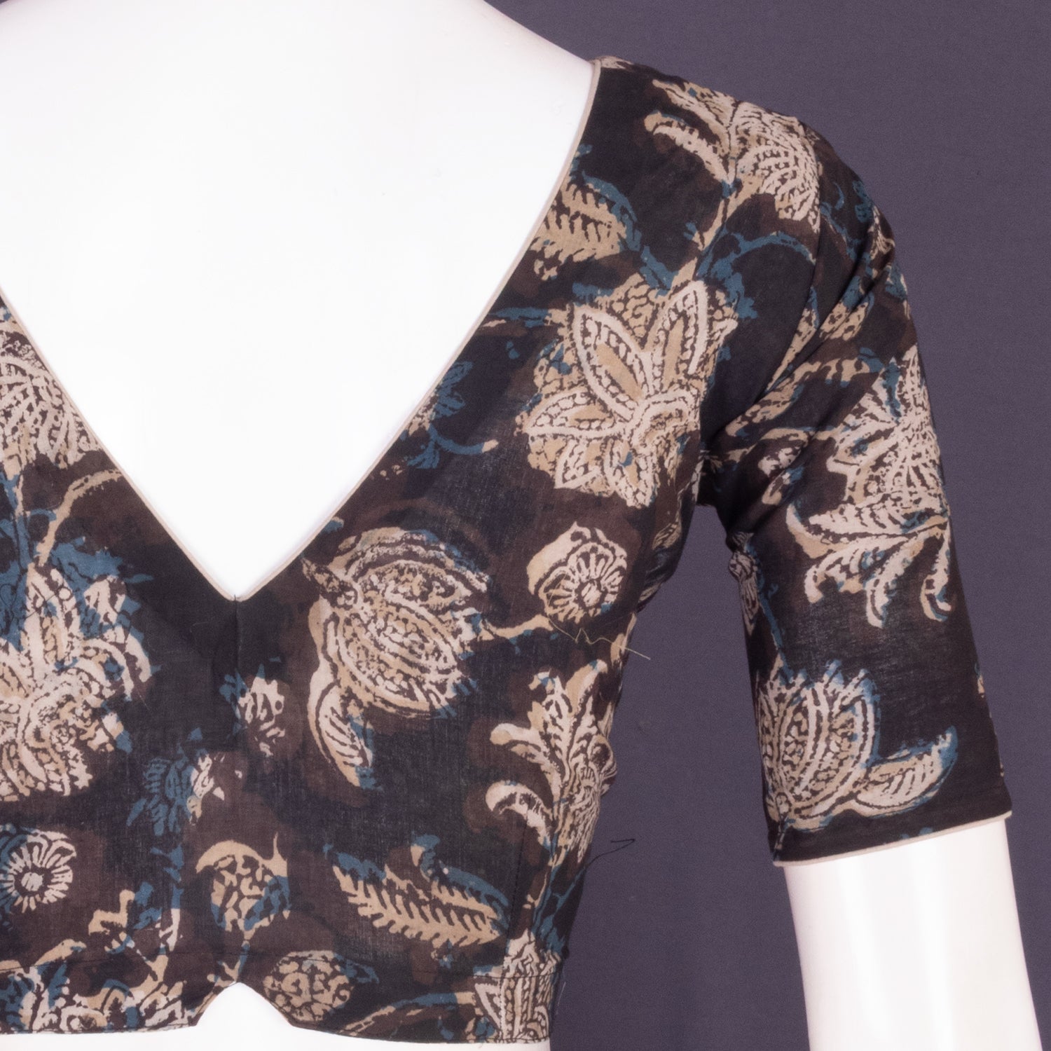 Black Hand Block Jahota Printed Cotton Blouse 10074998