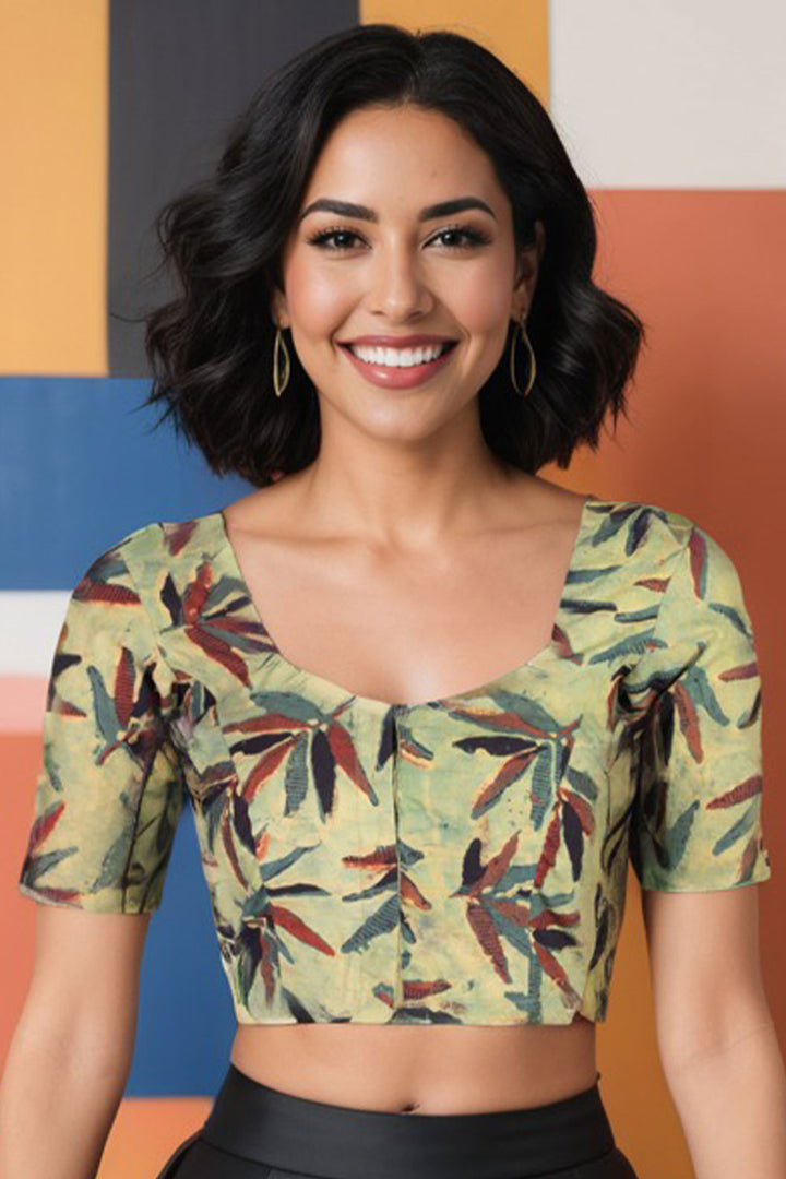 Green Hand Block Jahota Printed Cotton Blouse 10075000