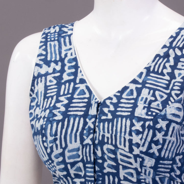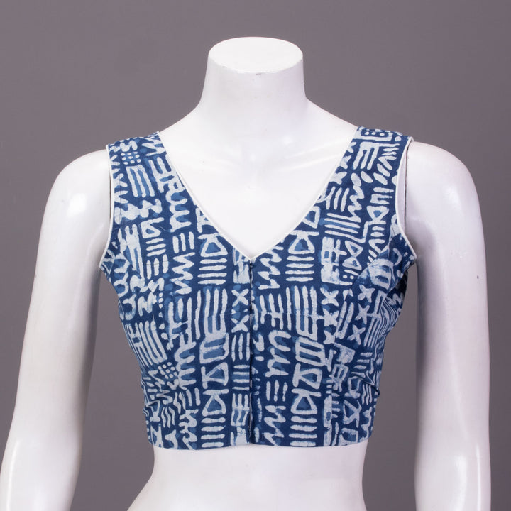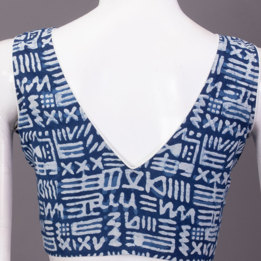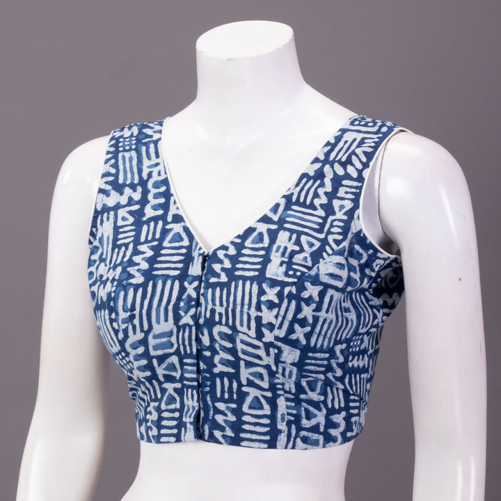 Indigo Blue Hand Block Print Cotton Blouse 10074442