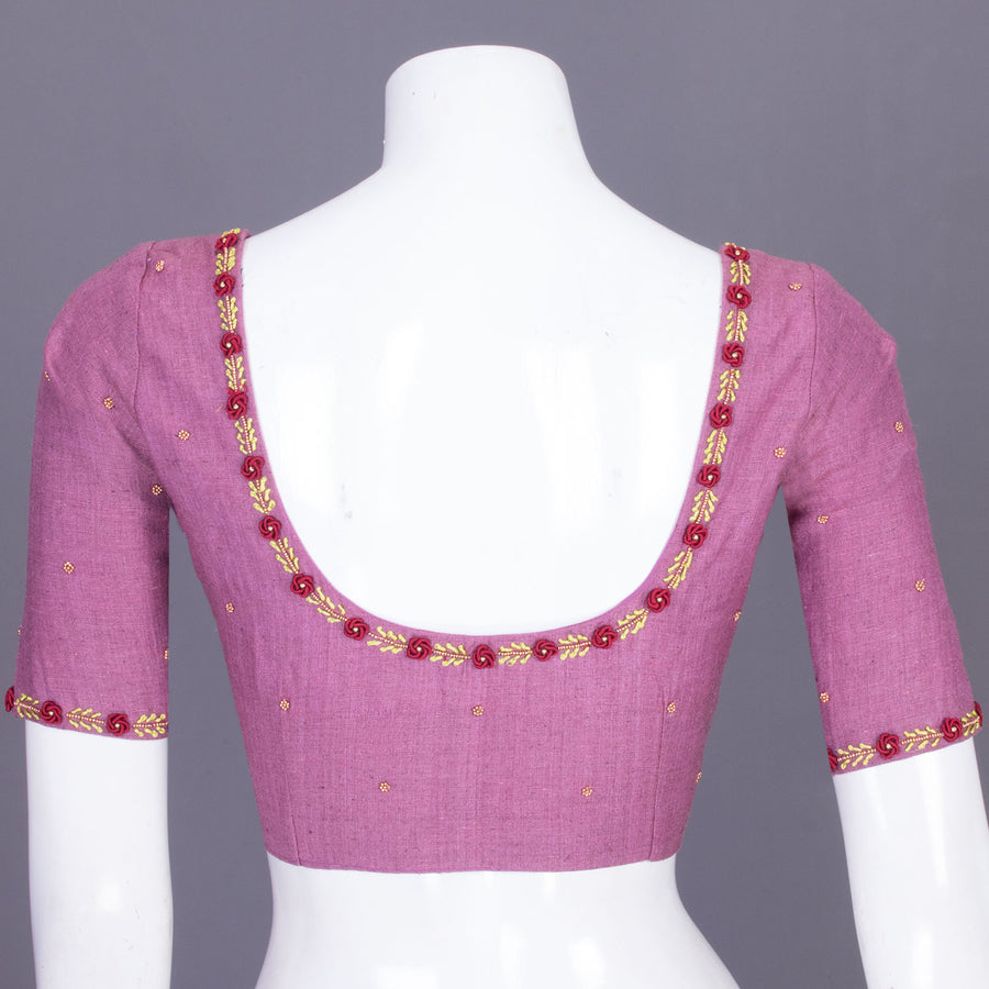 Purple Aari Embroidered Mangalgiri Cotton Blouse The delicately patterned Aari Embroidered Mangalgiri Cotton Blouse is expertly handcrafted from pure cotton fabric. Its durable yet breathable material makes it perfect for all-d...