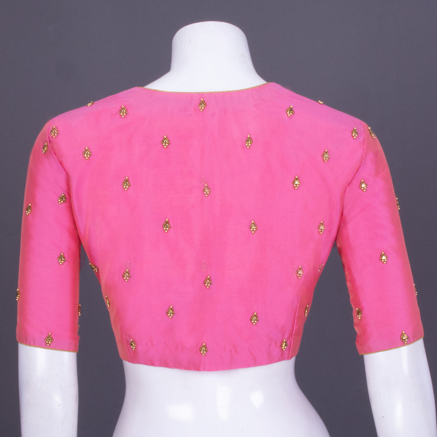 Indulge in the irresistible charm of this Pink Aari Embroidered Tussar Silk Blouse, adorned with stunning embroidery on the back and sleeves. Elevate your grace and refinement with this exceptional garment, ideal for complement...