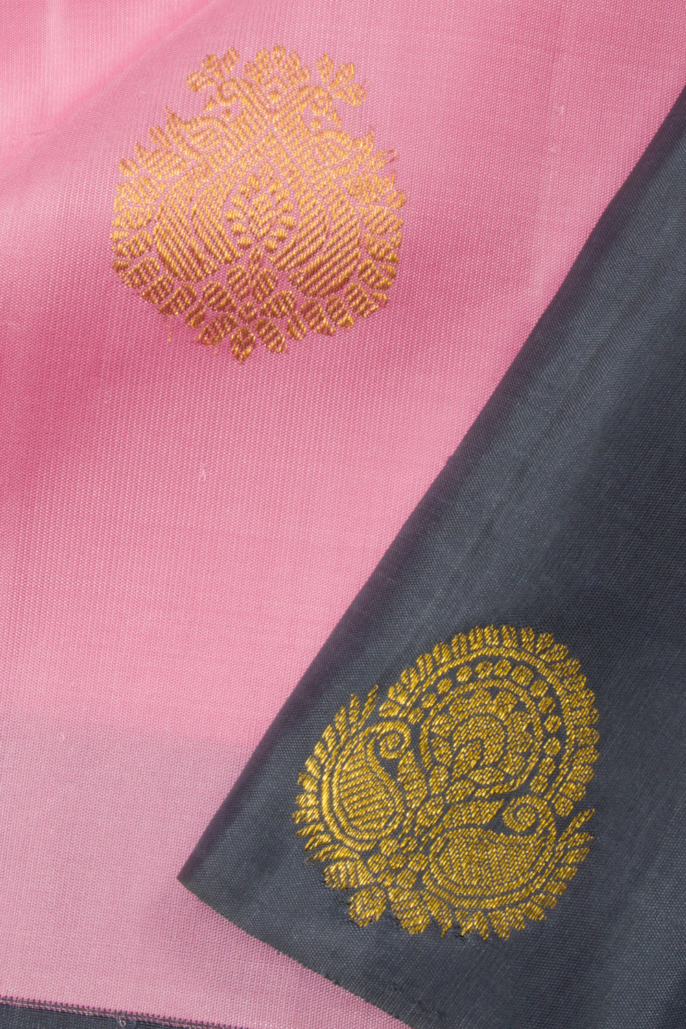 This beautiful pink handloom Kanjivaram silk saree adds a touch of class to any wardrobe. The silk fabric is luxurious and comfortable, perfect for any special occasion. Enjoy a modern look with traditional Indian flair.
