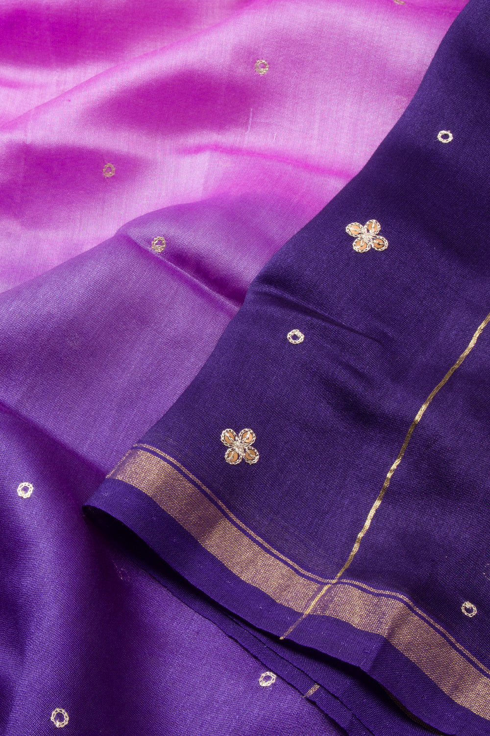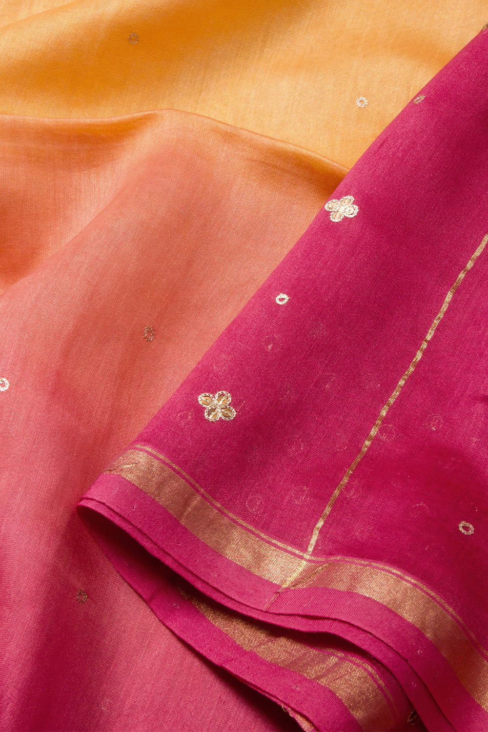 Embrace the elegance of this Beige Handloom Saree with kangri sequins and Zari embroidery. The mercersised tissue silk warp offers a luxurious feel, while the intricate embroidery adds a touch of sophistication. Elevate any occ...
