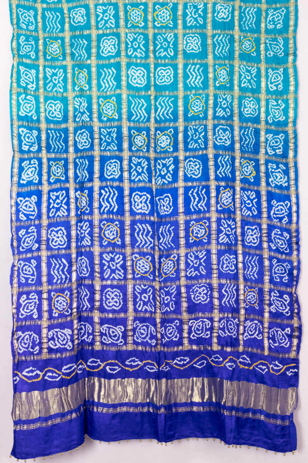 Elevate your traditional look with our Blue Bandhani Gajji Silk Dupatta! The elegant blue Gaji tissue pallu adds a touch of sophistication, while the chandrokhani bandhani and contrast border bring a pop of color. Complete with...