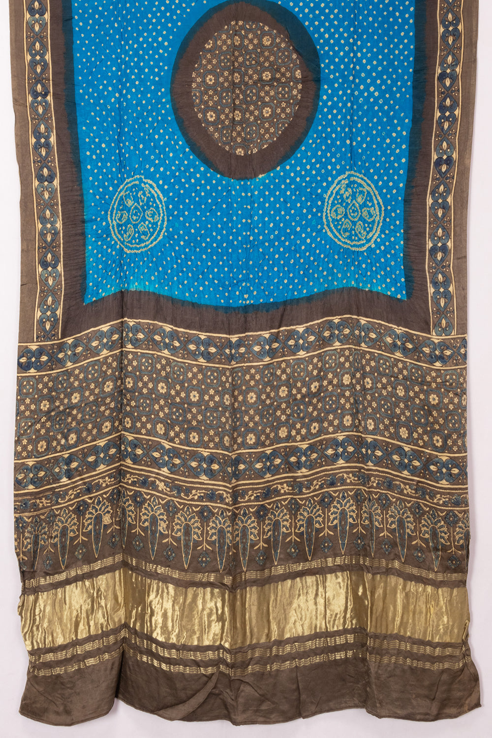 Elevate your style with our Blue Ajrakh Printed Bandhani Gajji Silk Dupatta! Made with soft and luxurious silk, this dupatta features a stunning blue Ajrakh print and intricate bandhani work. Add a vibrant touch to any outfit a...