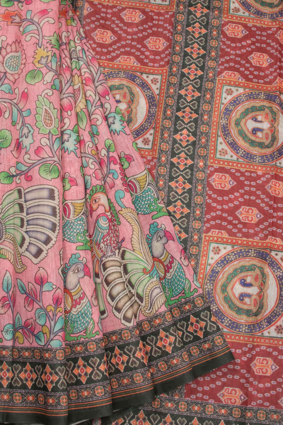 This Light Pink Kalamkari Print Malai Cotton Saree is the perfect choice for any special occasion. Bringing together traditional and modern styles, the vibrant print and exquisite cotton fabric provide a look that is both eye-c...