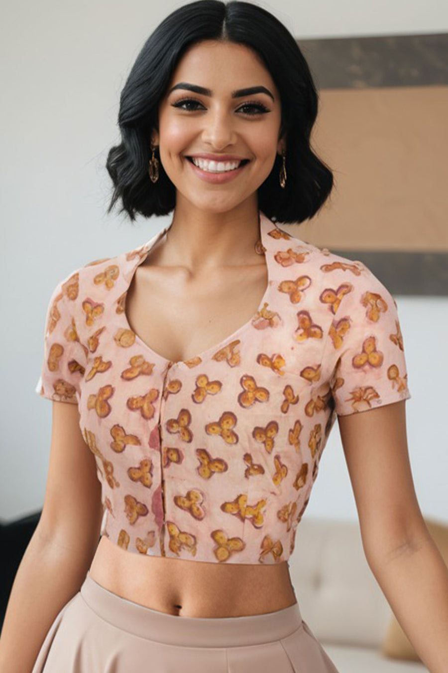Elevate your wardrobe with our Pink Vanaspathi Printed Cotton Blouse! Made with soft, breathable cotton, this stylish top features a unique pink Vanaspathi print that adds an eye-catching touch to any outfit. Perfect for day or...
