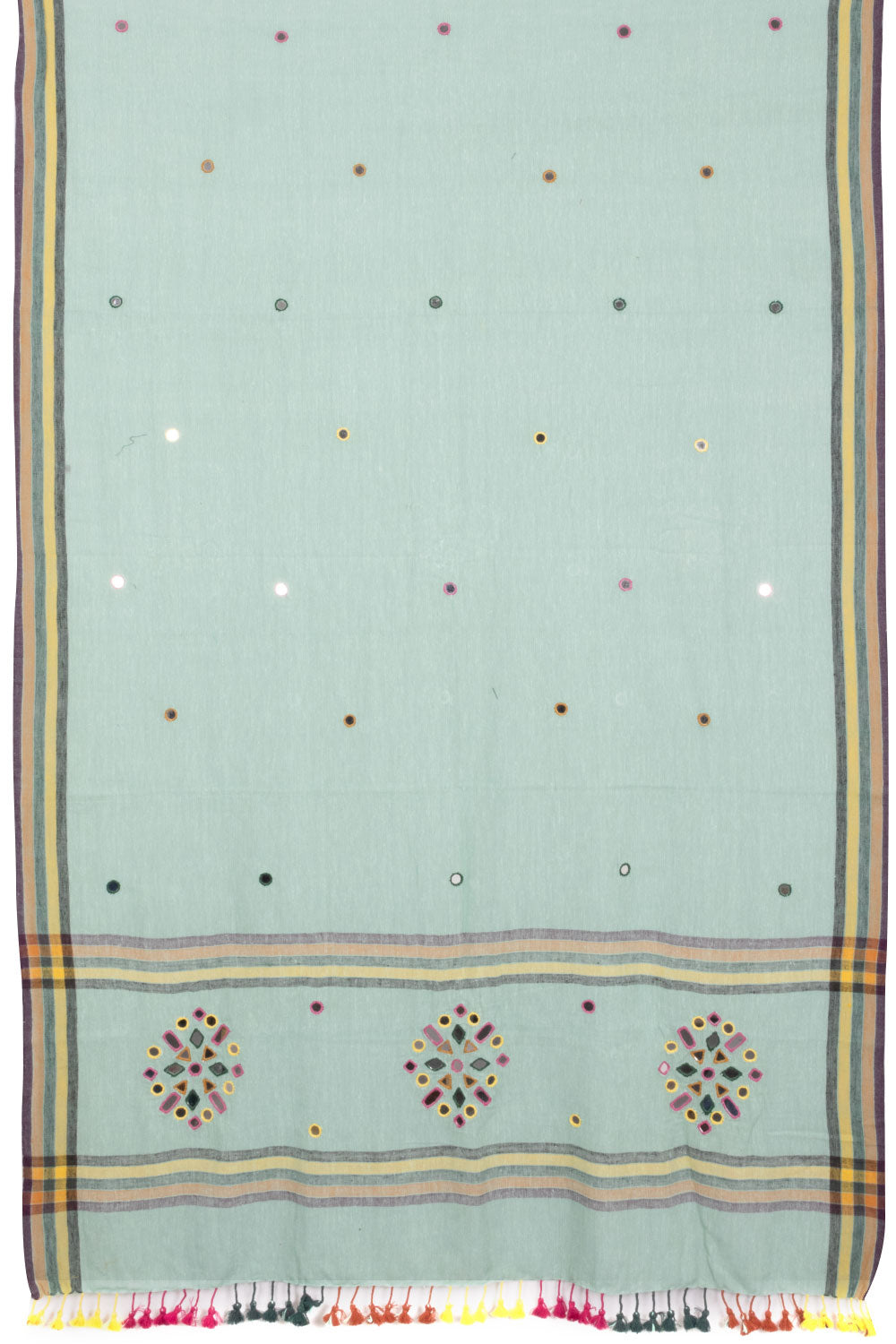 Handwoven Mangalgiri Cotton Dupatta with Stripes Design 10047622 Product Details Weaving Cluster - Mangalgiri Material - Cotton Technique - Wovens Colour - Green Edits - Dakshin Cotton Colour Details - Green, Yellow, Red Ca...