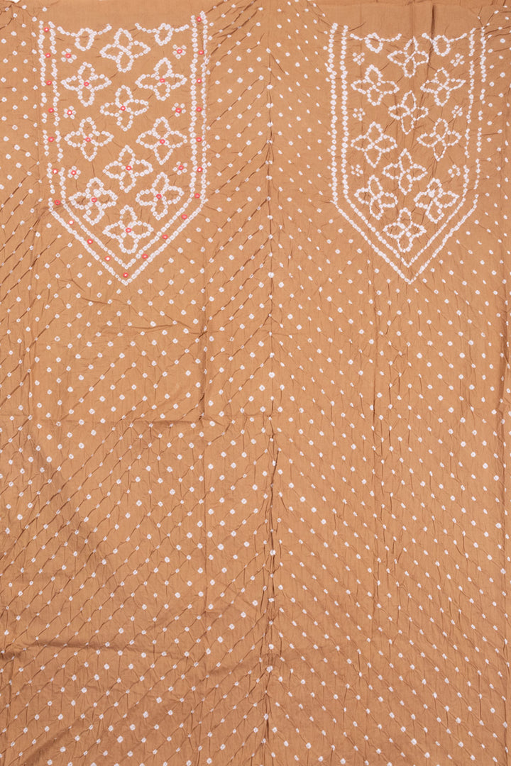 Brown Bandhani Cotton 3-Piece Salwar Suit Material with Mirrorwork Look your best with this stunning salwar suit. Adorned with delicate mirrorwork, the high-quality Bandhani cotton material adds an elegant and comfortable touch to your wardrobe. Get ready to impress and stay comfortable all day long.