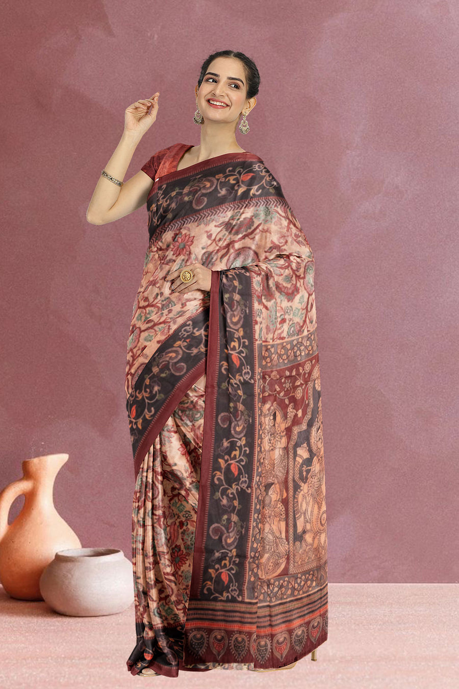 Wrap yourself in the timeless elegance of this beige Chettinad cotton saree, where traditional craftsmanship meets everyday comfort. Handwoven with meticulous care, this saree features an exquisite temple border that adds a tou...
