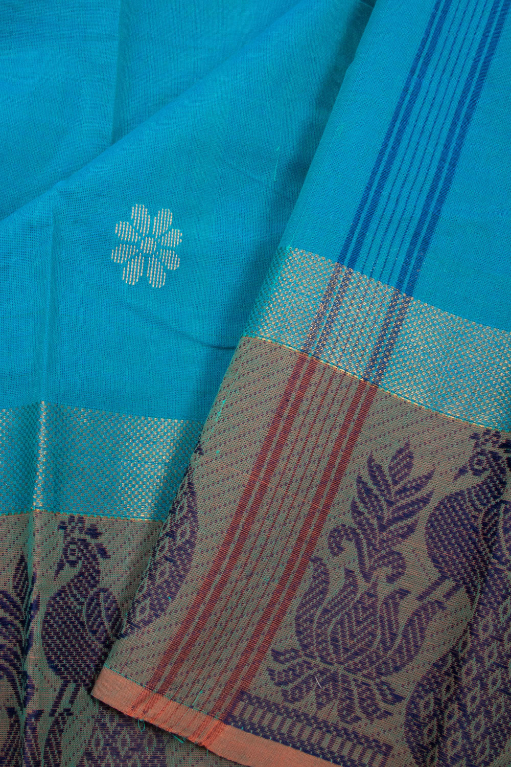Blue Handloom Chettinad Cotton Saree. Crafted from breathable cotton, it offers all-day comfort while showcasing rich, vibrant hues unique to Chettinad craftsmanship. Its handloom texture adds a touch of authenticity, making it...