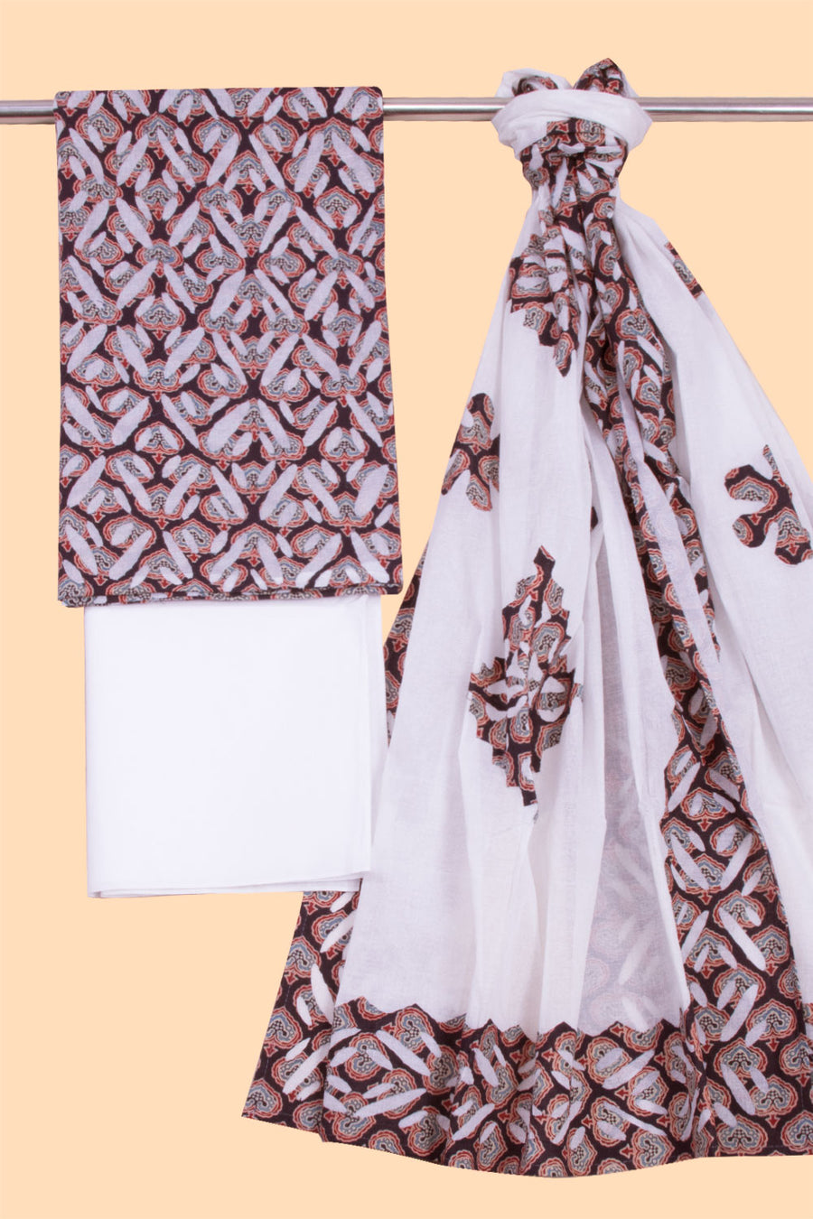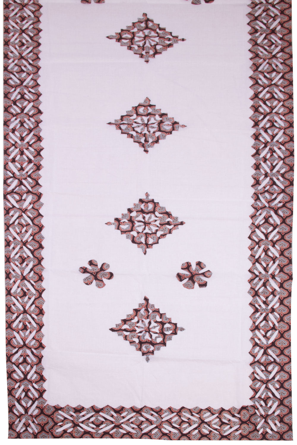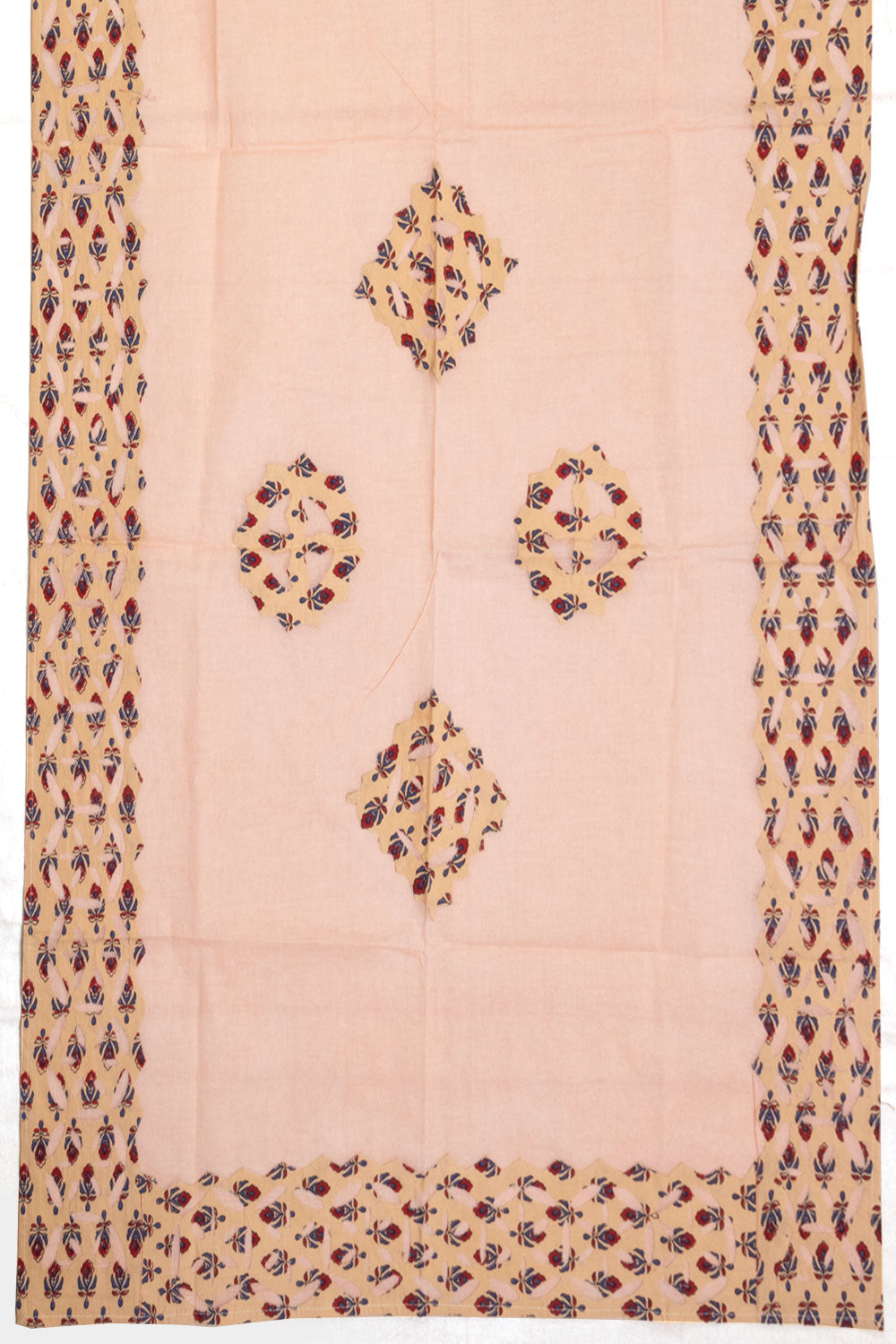 Indulge in the delicate beauty of our Red Ajrakh Printed Cutwork Applique Embroidered Cotton 3 Piece Salwar Suit Material. Made with the highest quality cotton, this suit material features intricate applique embroidery from Bar...
