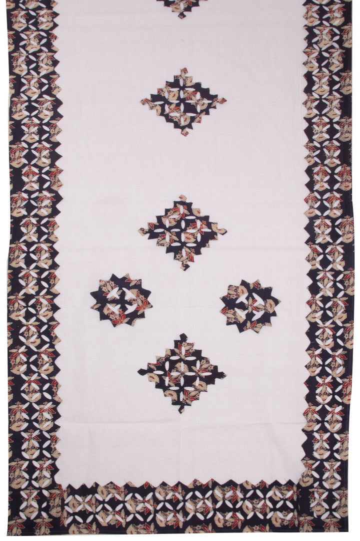 Indulge in the delicate beauty of our Black Ajrakh Printed Cutwork Applique Embroidered Cotton 3 Piece Salwar Suit Material. Made with the highest quality cotton, this suit material features intricate applique embroidery from Barmer, bringing a touch of traditional elegance to your wardrobe. Perfect for any occasion, this set is a must-have for those who appreciate exquisite craftsmanship and timeless style.