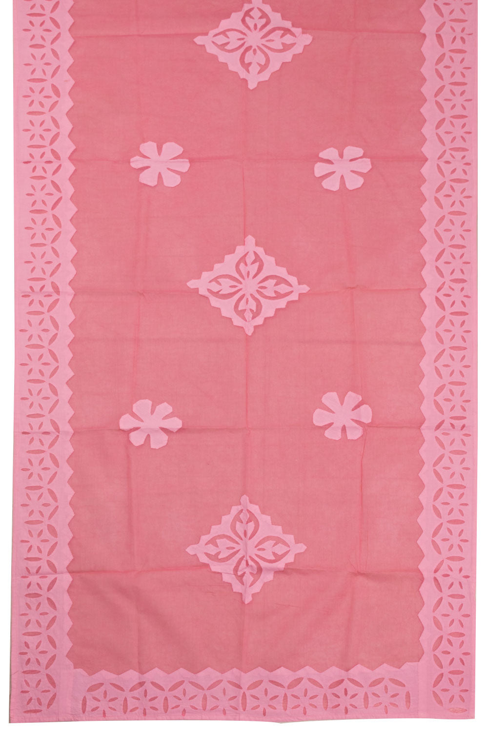 Experience the bright and vibrant colors of Rajasthan with our Candy Pink Solid Style Cutwork Applique Embroidered Cotton 3 Piece Salwar Suit Material! Made from 100% cotton, this set includes a salwar, kameez, and dupatta.