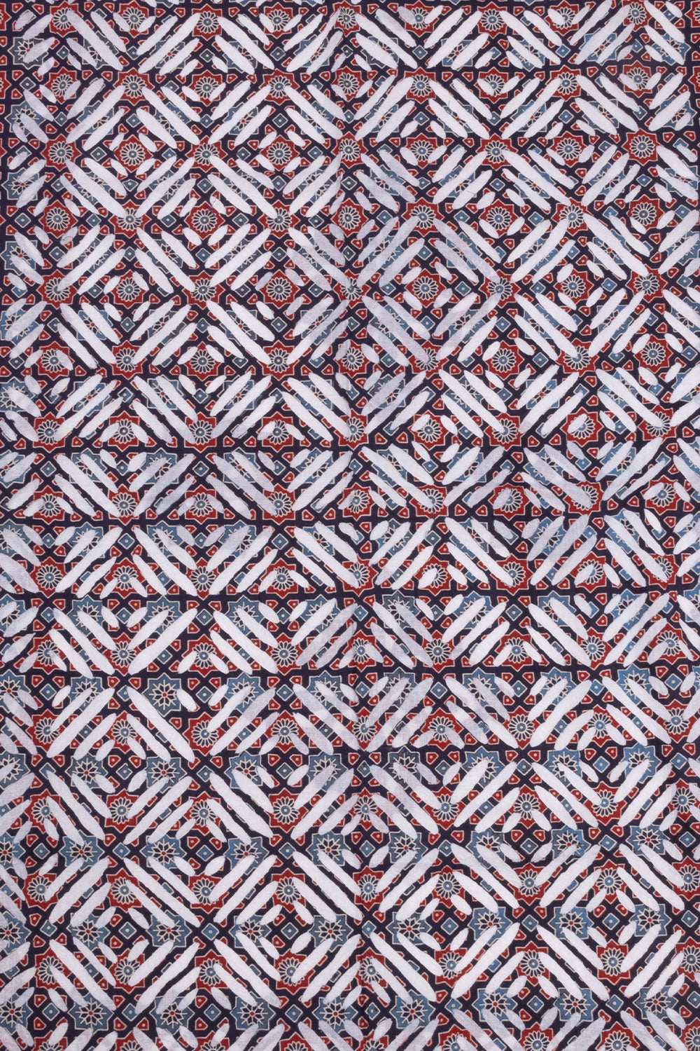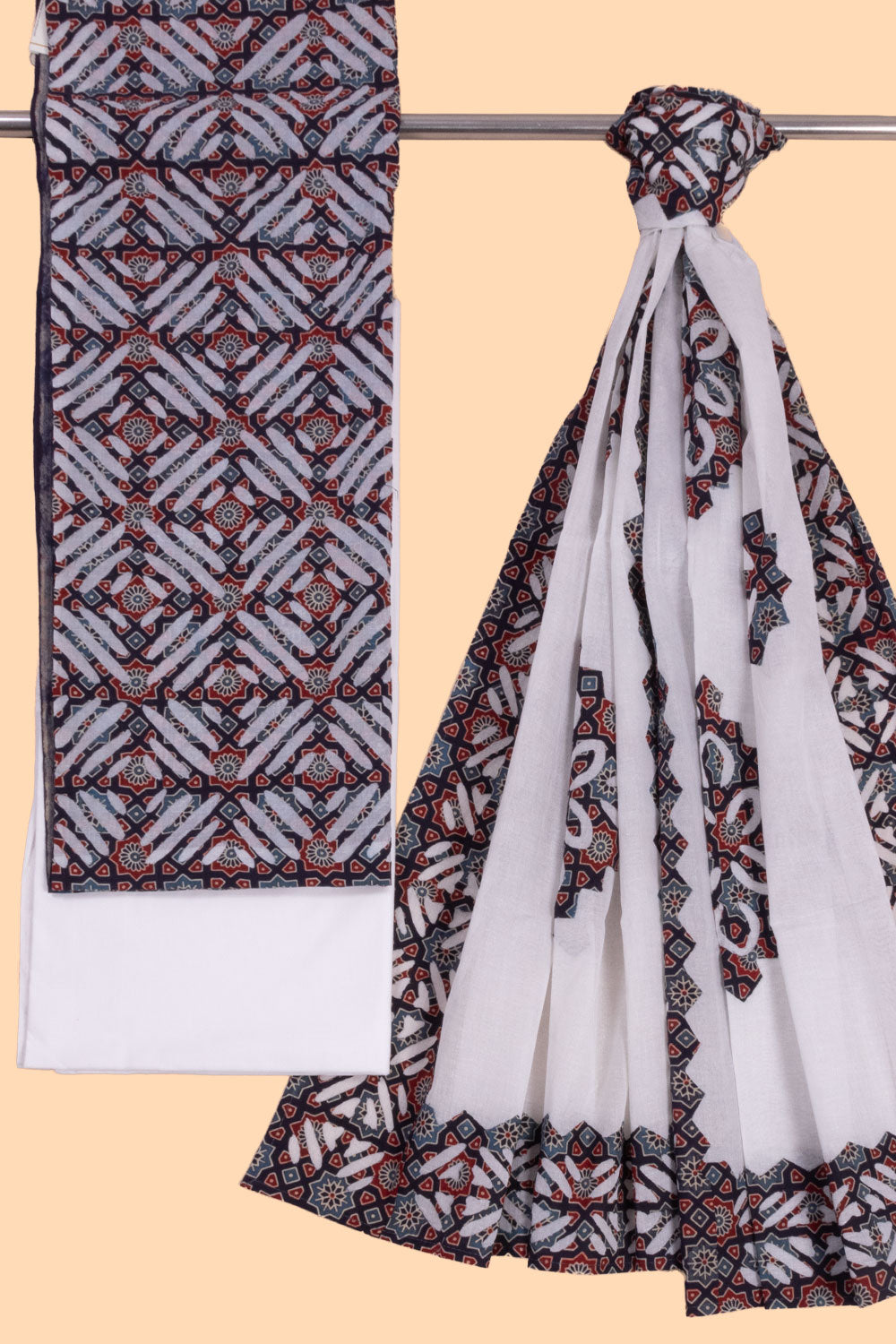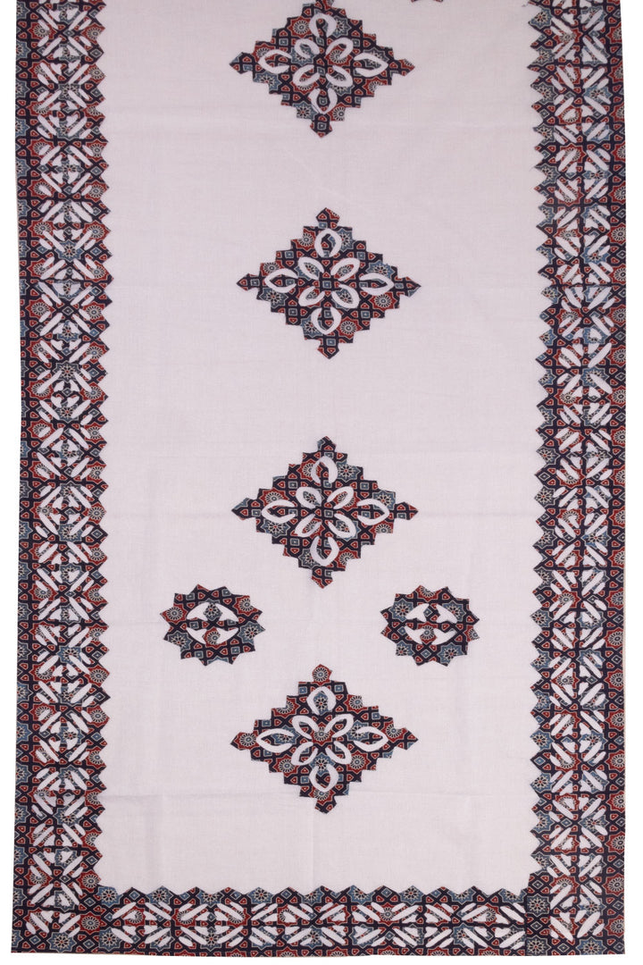 Electric blue Ajrakh Printed Cutwork Applique Embroidered Cotton 3 Piece Salwar Suit Material 10070173