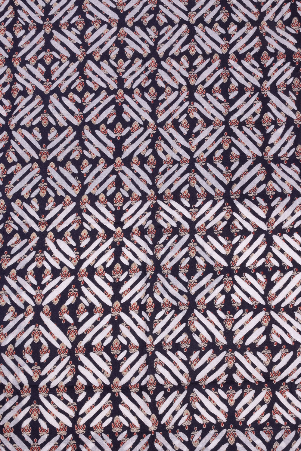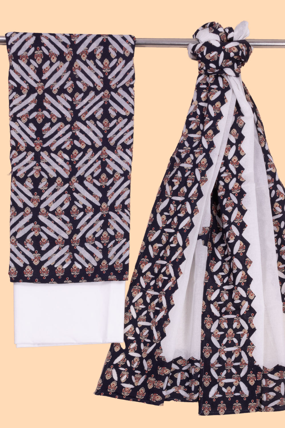 Navy Blue Ajrakh Printed Cutwork Applique Embroidered Cotton 3 Piece Salwar Suit Material 10070179