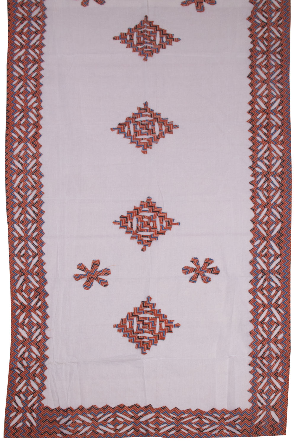 Indulge in the delicate beauty of our Orange Ajrakh Printed Cutwork Applique Embroidered Cotton 3 Piece Salwar Suit Material. Made with the highest quality cotton, this suit material features intricate applique embroidery from Barmer, bringing a touch of traditional elegance to your wardrobe. Perfect for any occasion, this set is a must-have for those who appreciate exquisite craftsmanship and timeless style.