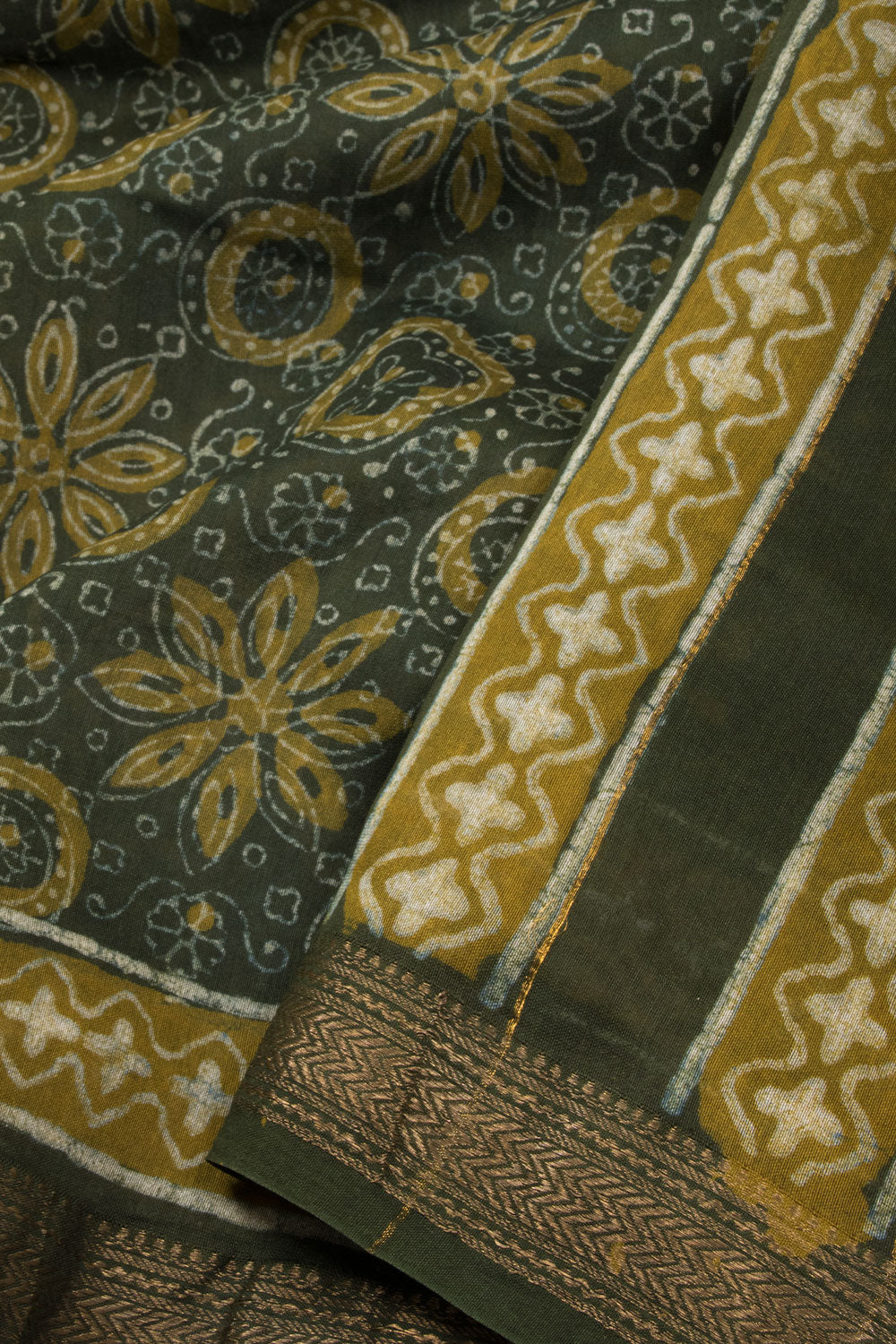 Dabu Printed Natural Dye Chanderi Silk Cotton Saree with Zigzag Design and Geecha Border 10058672