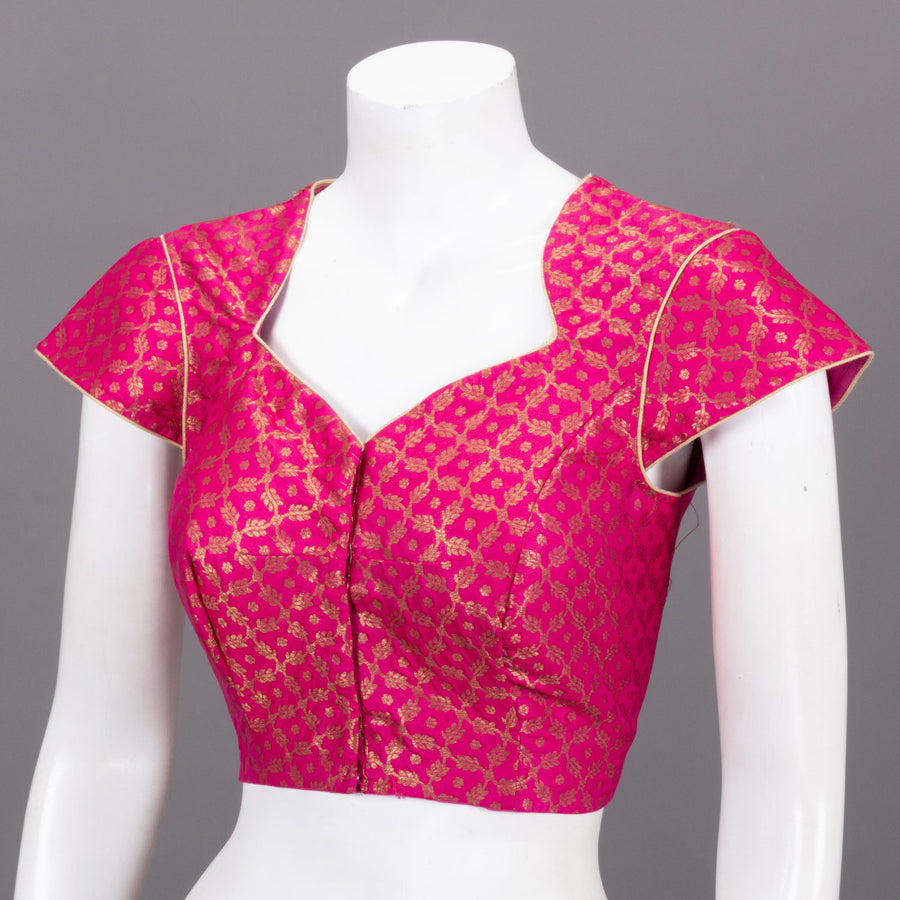 Elevate your ethnic wardrobe with this stunning pink Banarasi organza blouse! Crafted from luxurious organza fabric, this piece features intricate floral motifs that dance across the surface, bringing timeless elegance to your ...