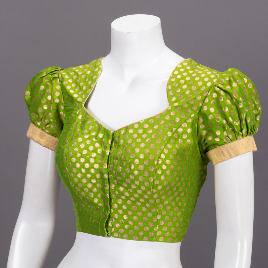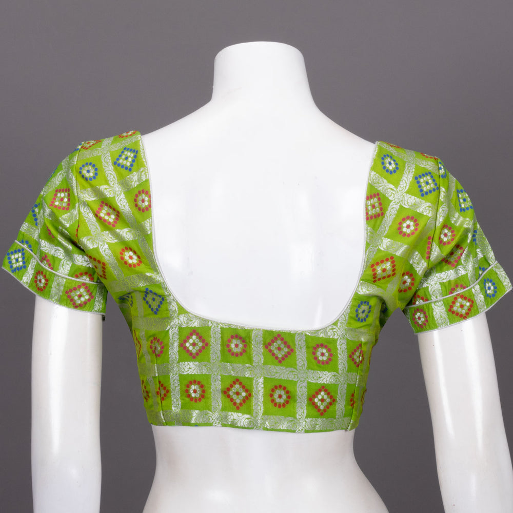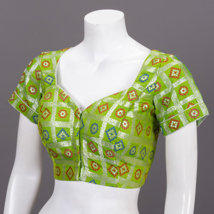 Celebrate nature's beauty in this vibrant Green Banarasi Katan Silk Blouse, a refreshing addition to your ethnic wardrobe. Crafted from authentic Katan silk, this blouse delivers the signature lustre and refined texture that Ba...