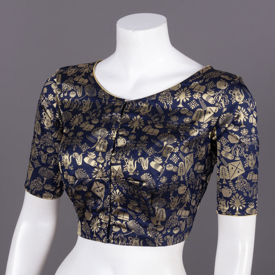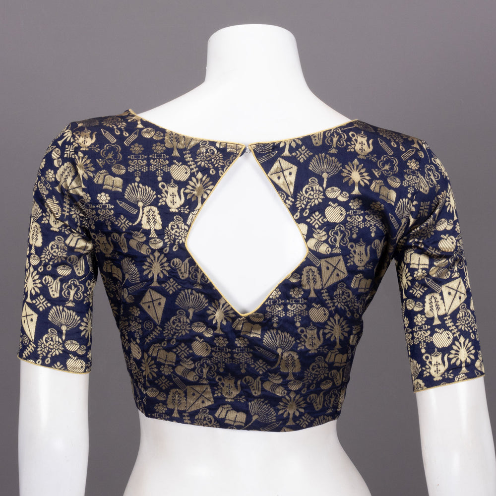 Dive into elegance with this captivating Blue Banarasi Katan Silk Blouse, a timeless treasure for your ethnic collection. Crafted from authentic Katan silk, this blouse features the characteristic richness and luminous finish t...