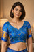 Classic Royal Blue Kanjivaram Silk Blouse With Floral Motifs and Geometric Border 10076634