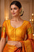This Kanjivaram Silk Blouse in golden mustard yellow gives a bright and warm look. It feels smooth and elegant. The paisley and floral designs gives a classic touch. Perfect for festivals or weddings, it pairs easily with many sarees for a beautiful, graceful look.