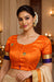 The saffron orange color of this Kanjivaram Soft Silk Blouse brings a bright and lively look. It feels soft and comfortable. The neat geometric designs gives a modern touch. Perfect for festive or casual wear, it pairs well with many sarees.