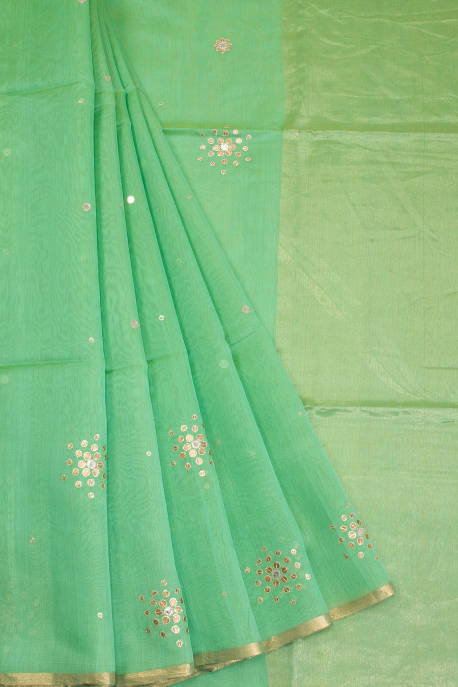 Handwoven Chanderi Silk Cotton Saree with Sequin Embroidery 10042243