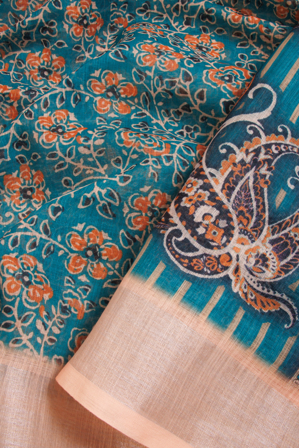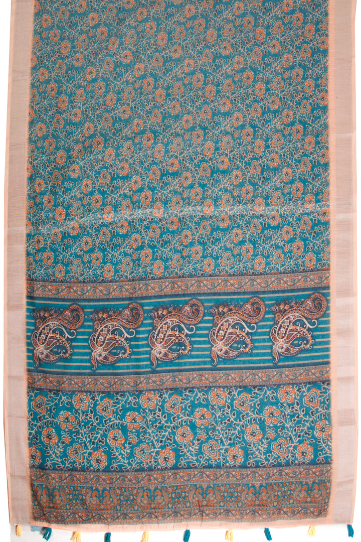 Green Fancy Printed Linen Saree 10068770