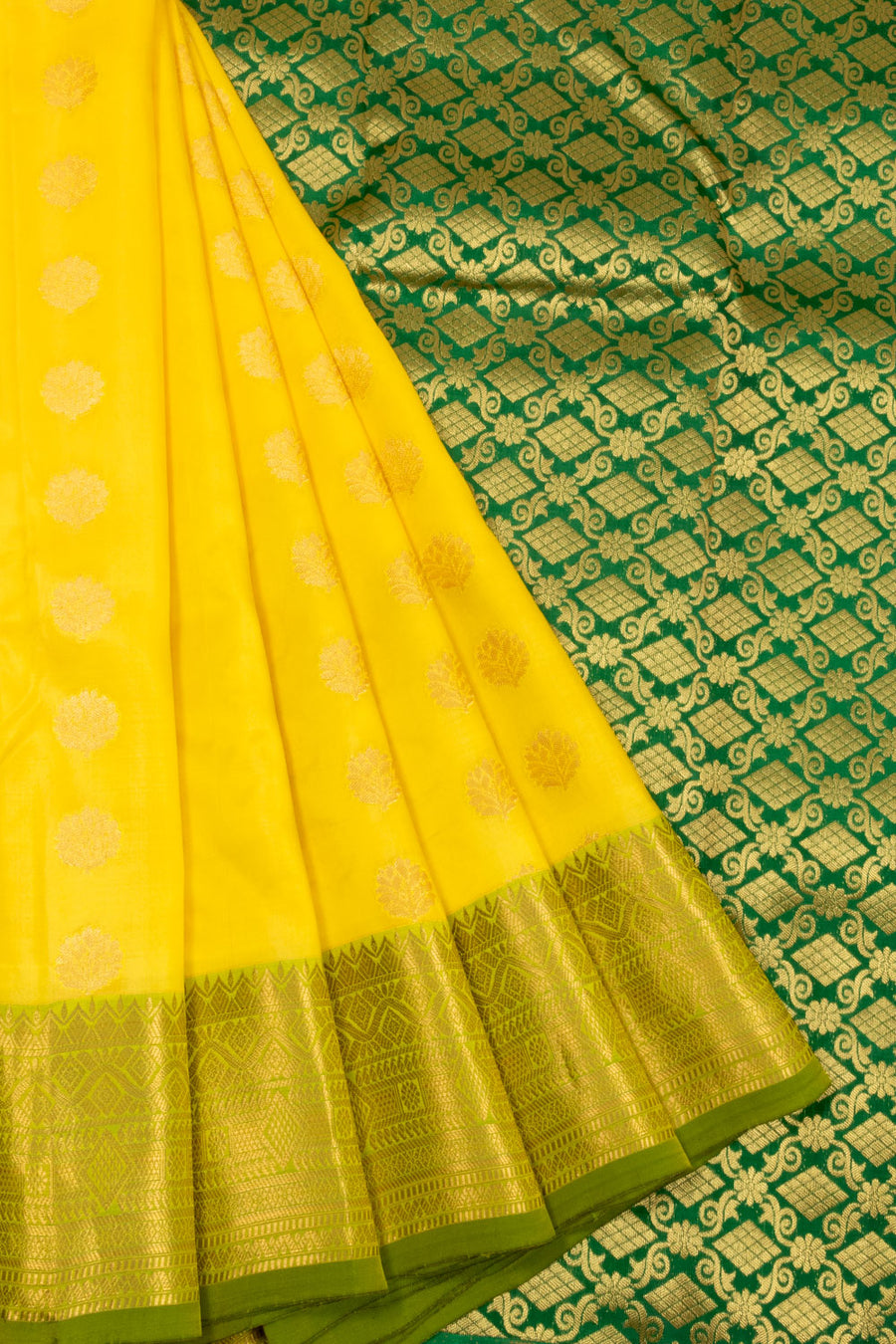 Drape yourself in sunshine with this stunning Yellow Kanjivaram Pure Silk Saree! Crafted from authentic Kanjivaram silk, this timeless piece radiates elegance with its rich, lustrous fabric and vibrant golden hue. Perfect for w...