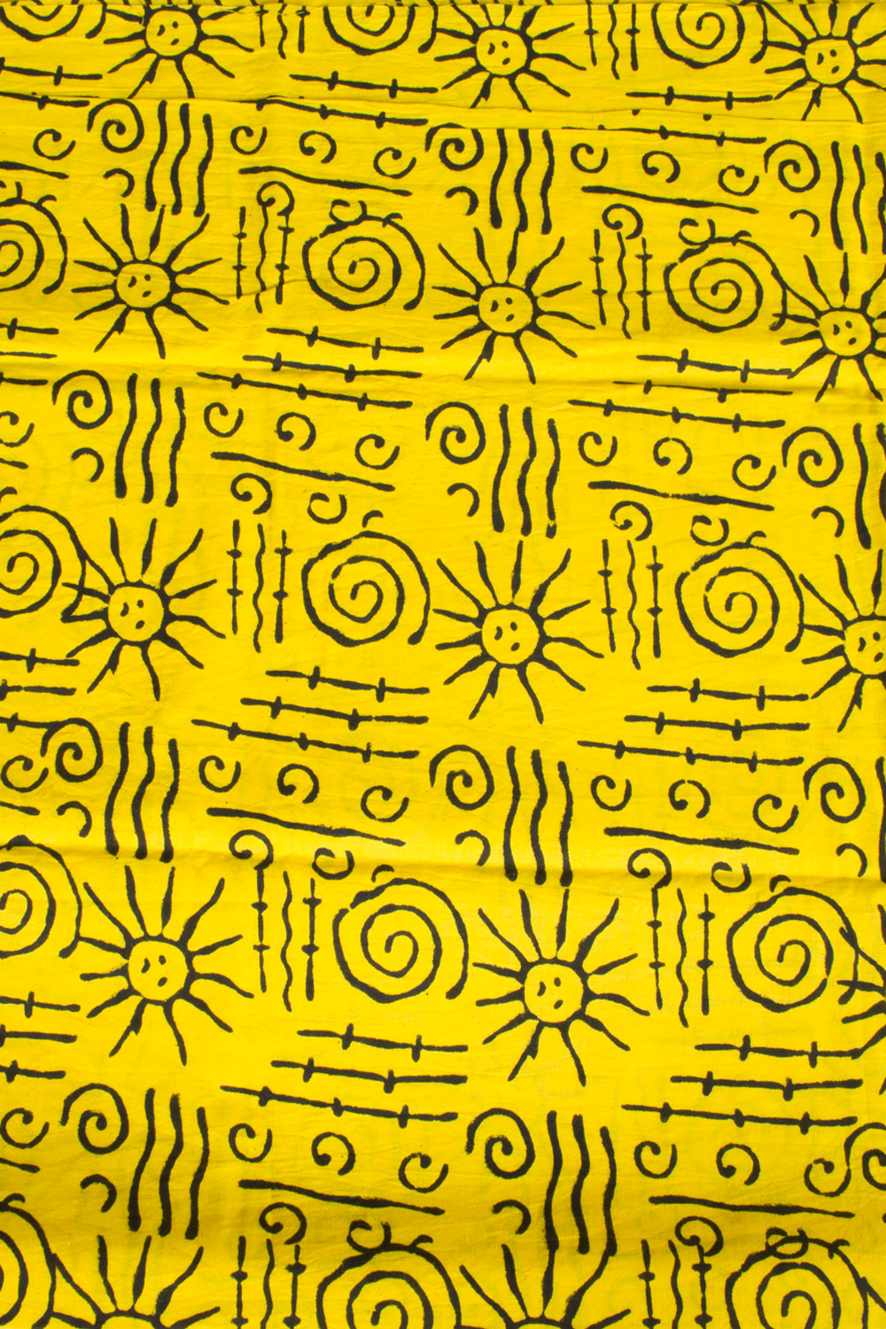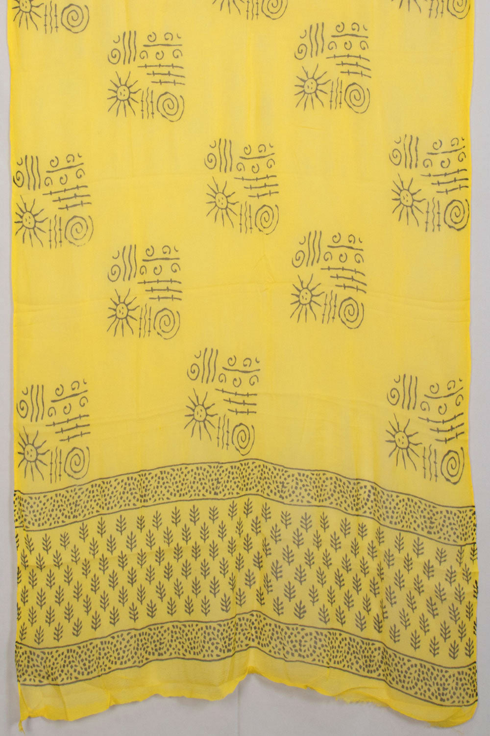 Experience the exquisite blend of traditional and contemporary with this 3-piece Black Hand Block Printed Cotton Salwar Suit Material! The top features a classic black color and stunning floral prints, while the bottom boasts a bright canary yellow shade with captivating Sun & Star prints. To complete the look, the delicate chiffon dupatta also features the elegant Sun & Star prints, making it a truly unique and eye-catching ensemble. Elevate your style with this must-have suit material!