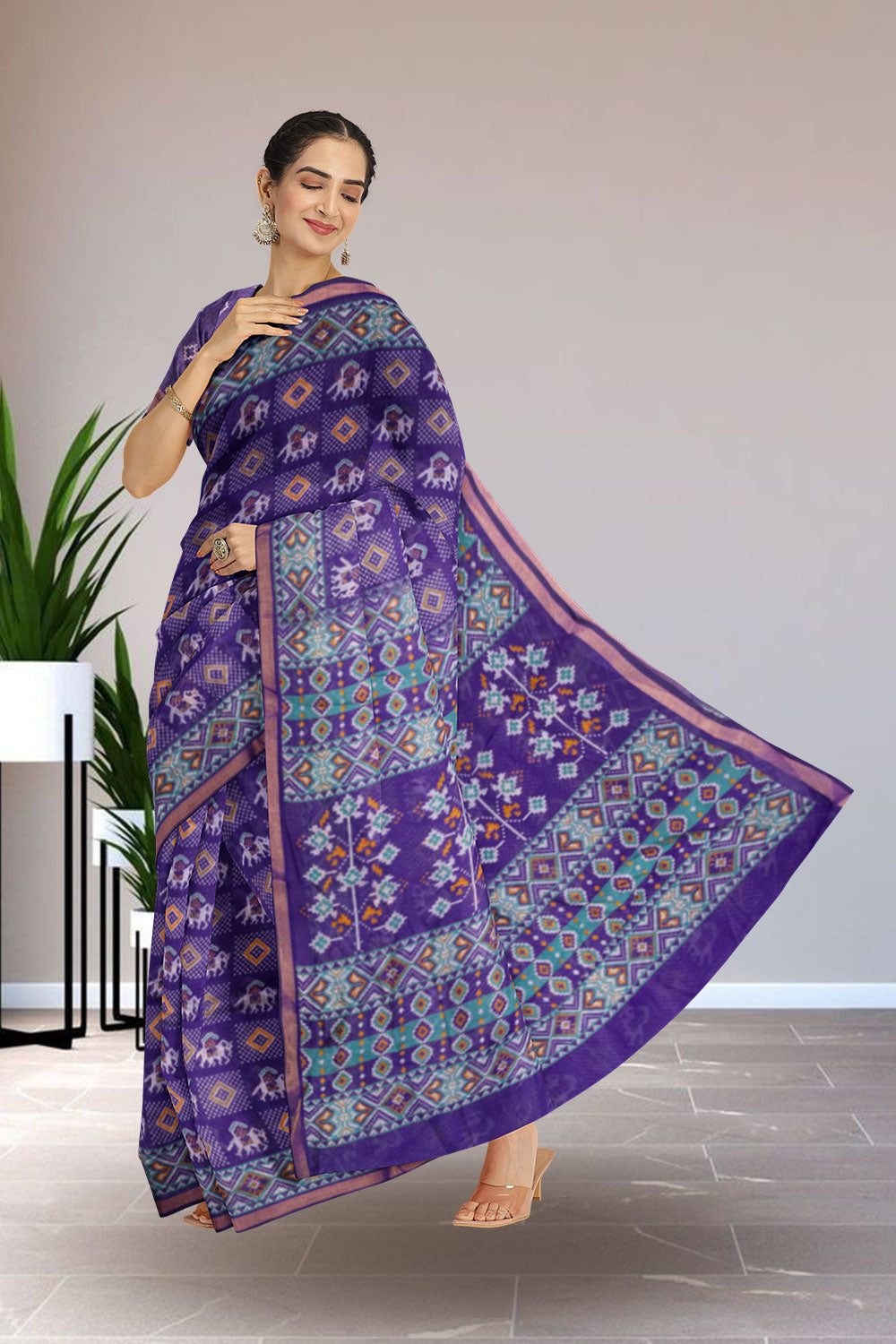 Enhance your ethnic wardrobe with the Purple Patola Printed Silk Cotton Saree. This saree blends the smooth comfort of silk cotton with the intricate Patola print, offering a perfect balance of tradition and style. The rich purple shade adds a regal touch, making it ideal for festive occasions and special celebrations. Embrace timeless craftsmanship and vibrant elegance in this stunning saree.