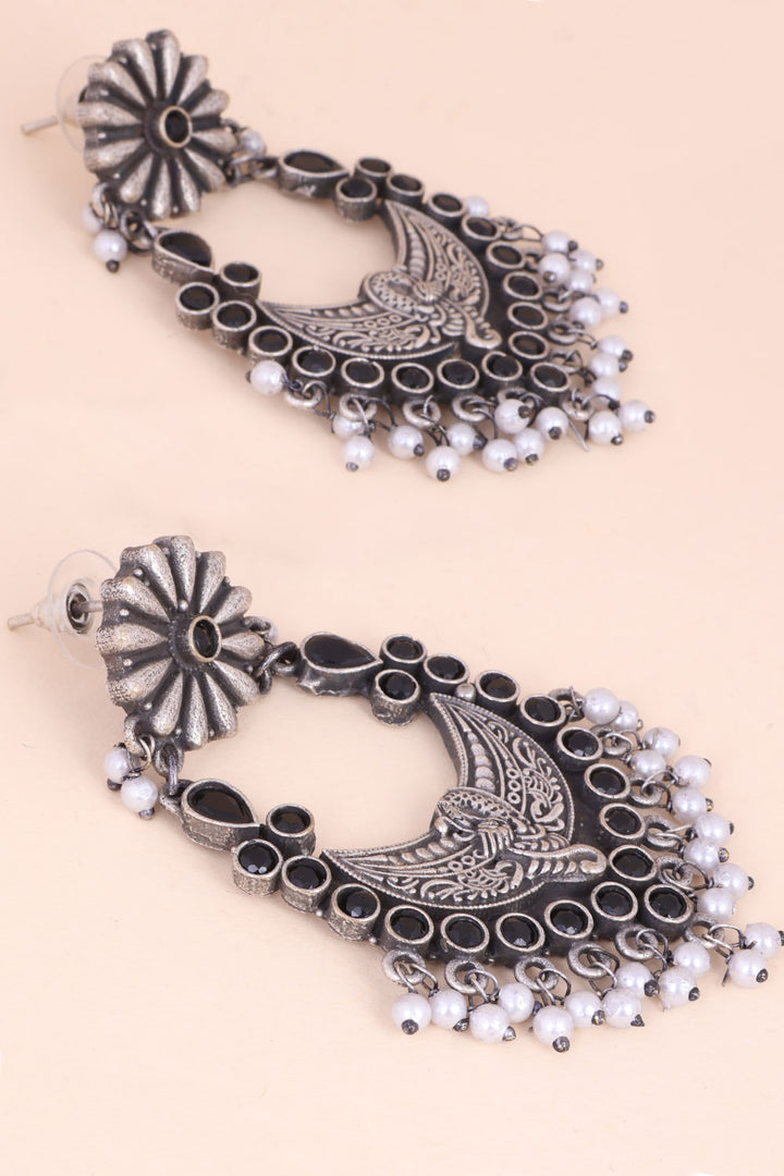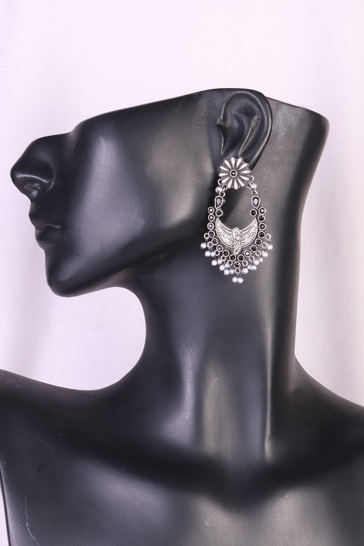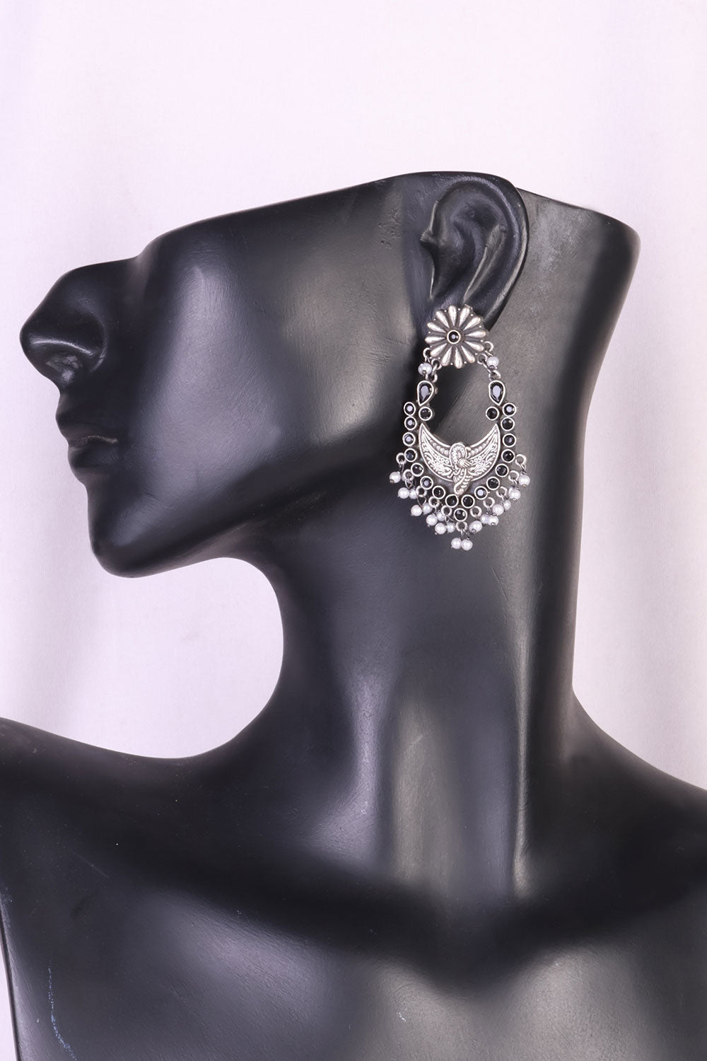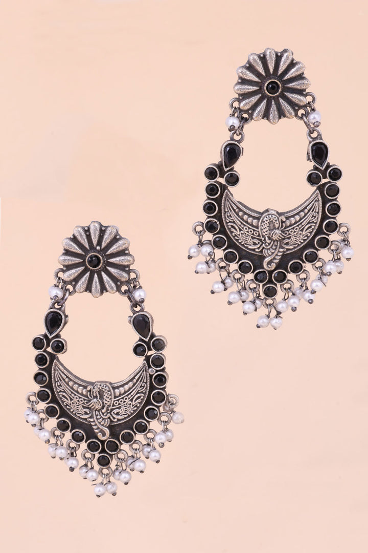Transform your look with our stunning Oxidised Chaandbalis Earring! The intricate Peacock Motif adds a touch of elegance and mystique to your style. These earrings are crafted with oxidised metal, giving them a unique and luxurious finish. Elevate any outfit and make a powerful statement with these beautiful earrings.