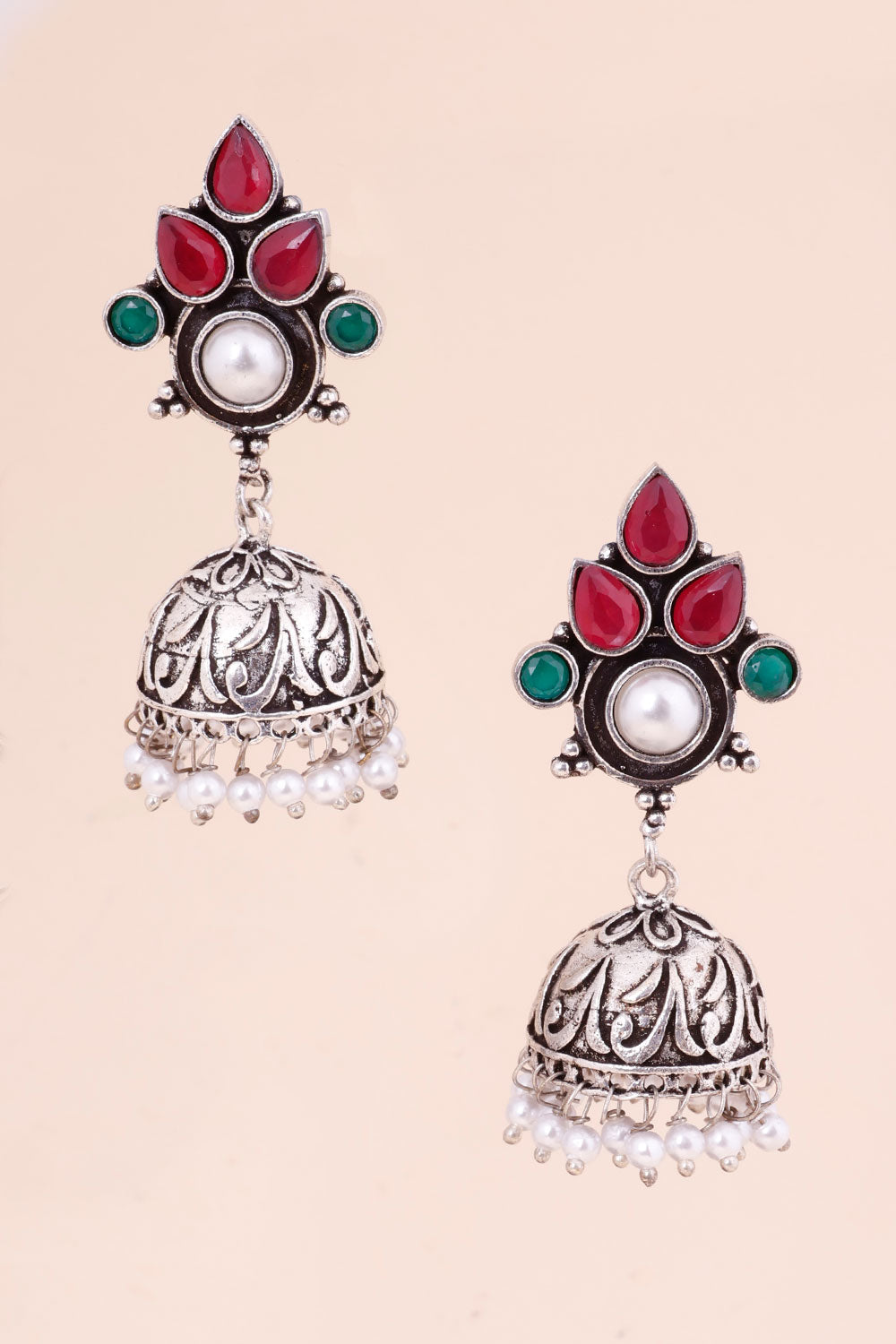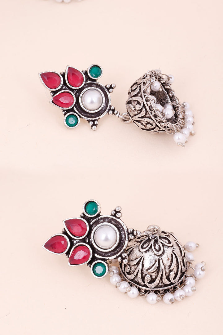 Elevate your style with our stunning Oxidised Floral Earring With Pearls! The beautifully crafted oxidised floral design adds a touch of elegance and the pearls add a touch of sophistication. Perfect for any occasion, these earrings will make you stand out and feel confident.