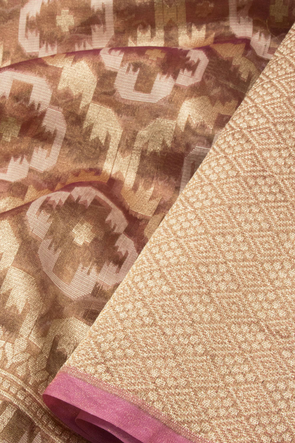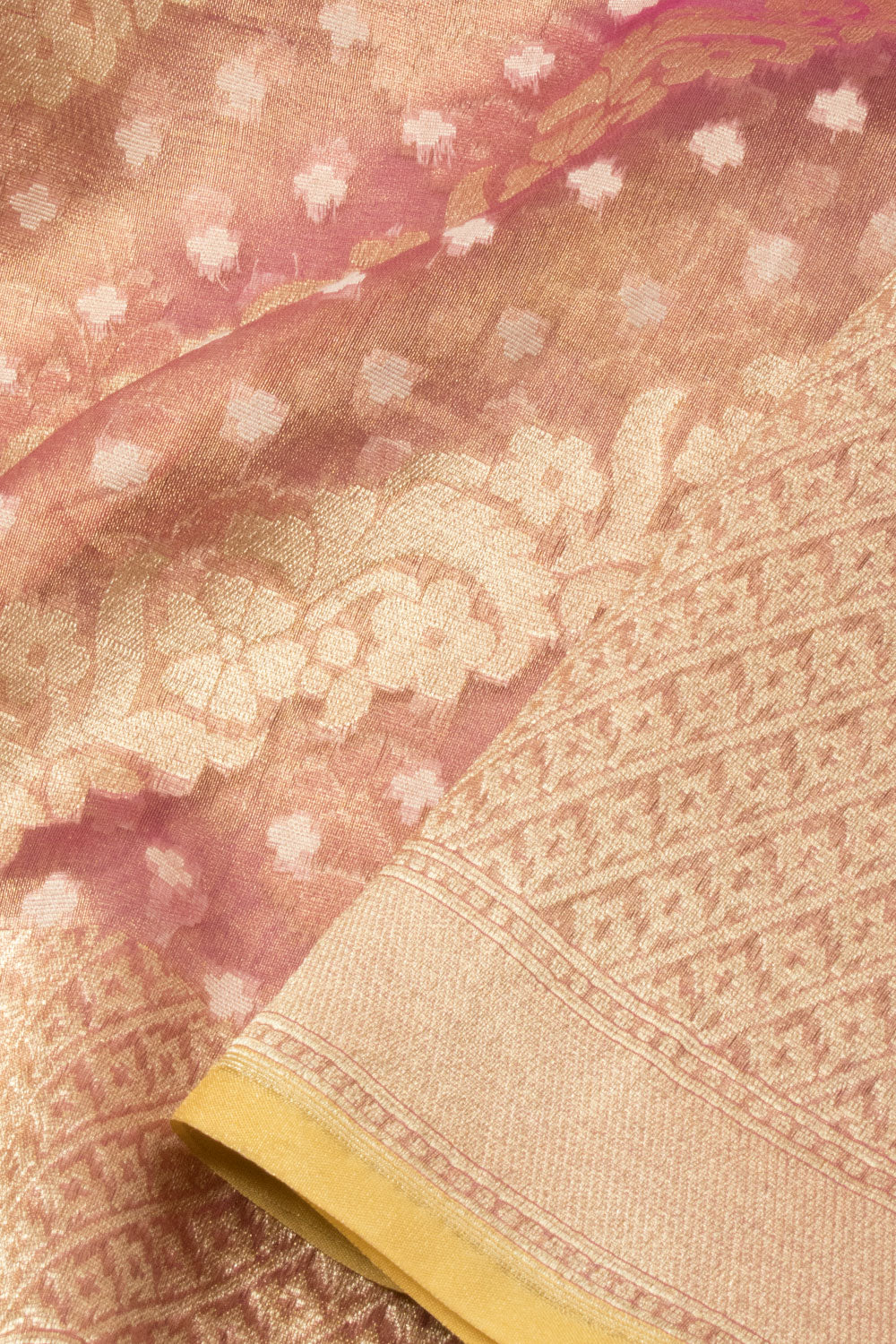 Dusky Rose Banarasi Tissue Silk Saree This saree features a timeless color combination that's sure to elevate any occasion you wear it to. It's the perfect way to make a statement.