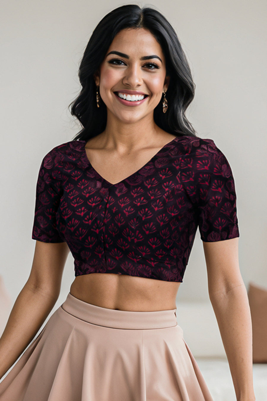 Avishya brings you an exquisite collection of indigo hand block printed cotton blouses, blending heritage craftsmanship with everyday comfort. These blouses, crafted from breath...
