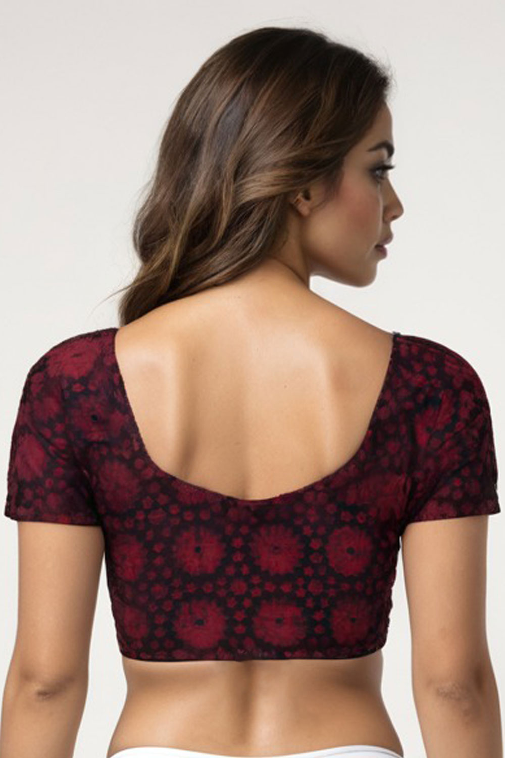 Maroon Floral Design Indigo Hand Block Print Cotton Blouse 10074608