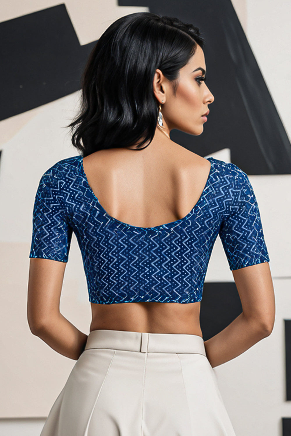 Indigo Blue Hand Block Print Cotton Blouse 10074440 Indigo Blue Hand Block Print Cotton Blouse 10074440