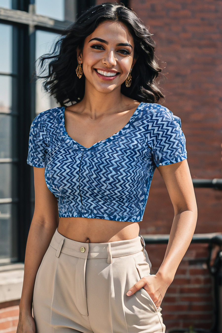 Avishya's Indigo Hand Block Printed Cotton Blouse Avishya brings you an exquisite collection of indigo hand block printed cotton blouses, blending heritage craftsmanship with everyday comfort. These blouses, crafted from breath...
