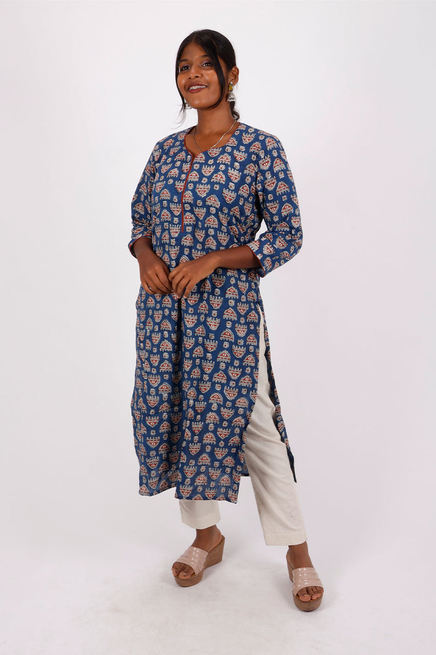 Blue Jahota Hand Block Cotton Kurta Blue Jahota Hand Block Cotton Kurta