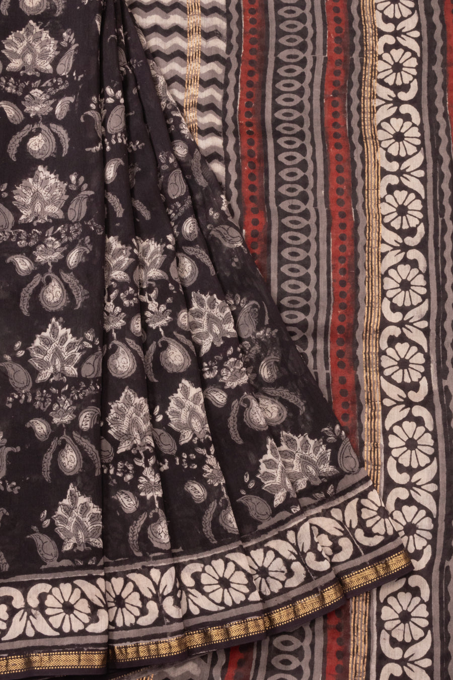 Elevate your style with our Black Jahota Printed Silk Cotton Saree! Made from the finest silk cotton, this saree features a unique print that is sure to turn heads. Perfect for any occasion, our saree offers both elegance and c...
