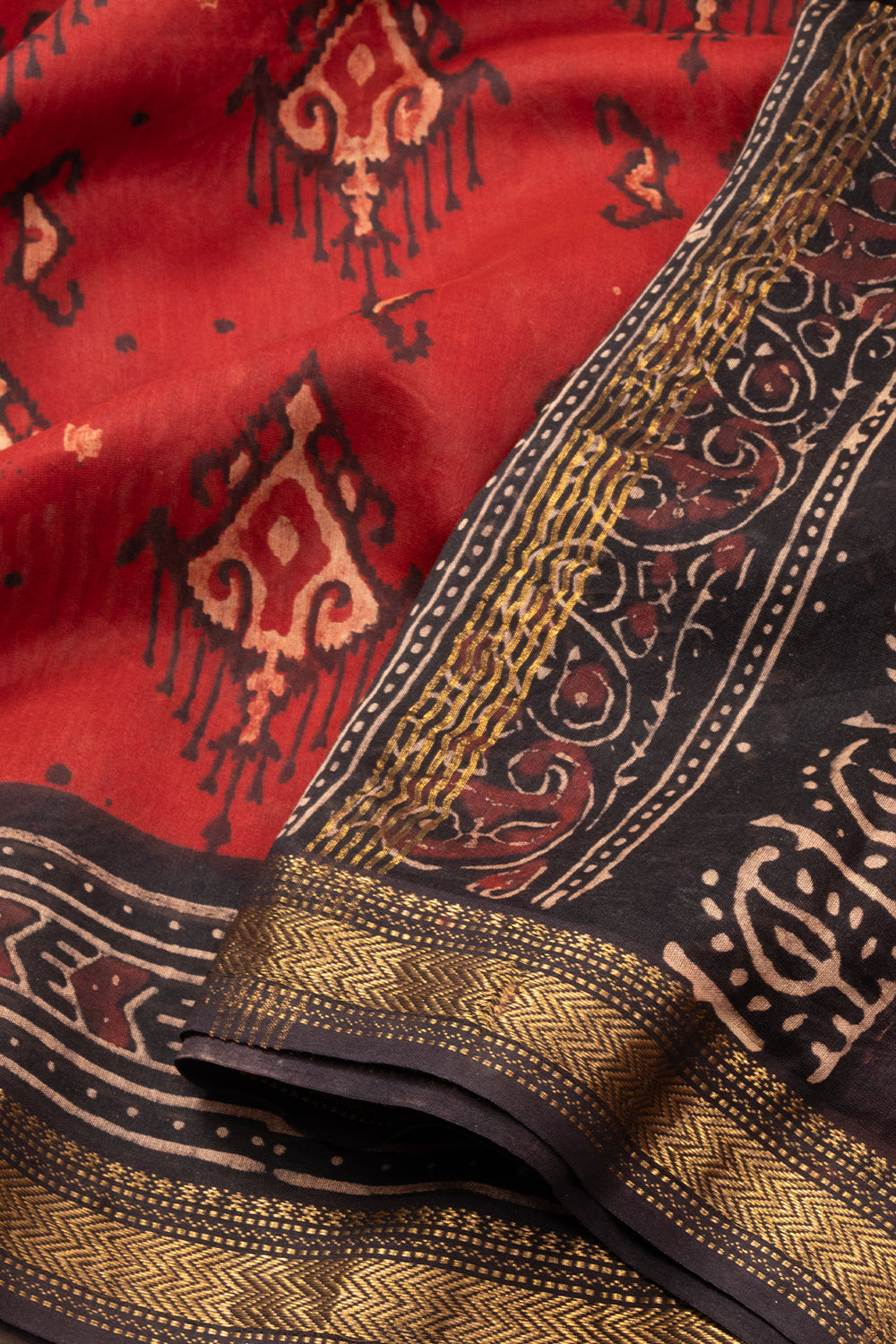 Experience the luxurious and elegant drape of our Maroon Jahota Printed Silk Cotton Saree. Made with the finest quality silk and cotton, this saree features intricate printing that adds a touch of sophistication to any occasion...