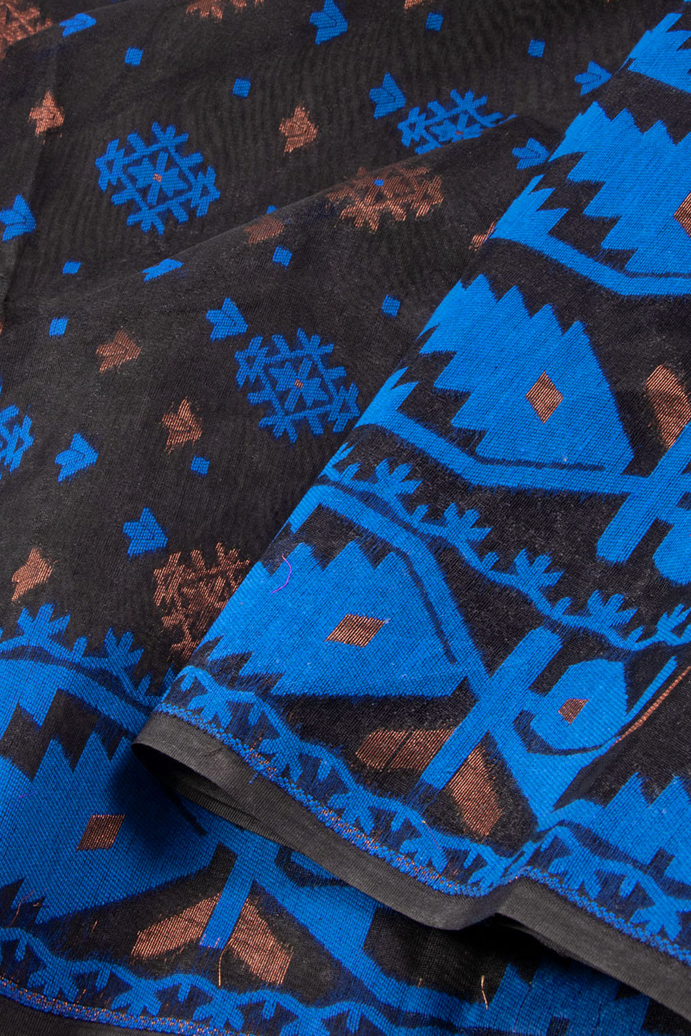 Experience the artistry and craftsmanship of our Black Handloom Jamdani Khadi Cotton Saree. Handwoven from high-quality cotton, this saree boasts intricate jamdani Khadi detailing that adds a touch of elegance to any occasion. ...