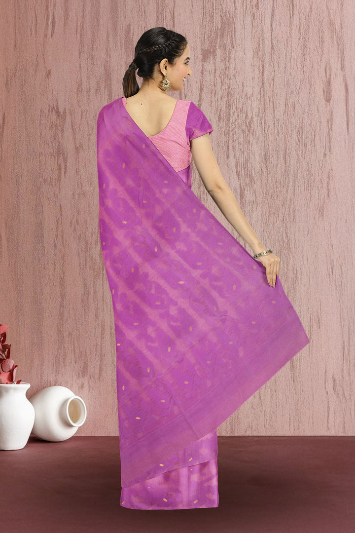Avishya presents the Jamdani Style Cotton Saree, a delicate and artistic weave inspired by the celebrated Jamdani weaving tradition. Woven with intricate motifs that appear to float over a sheer, lightweight cotton base, this saree offers a graceful drape and all-day comfort. With its fine texture and detailed patterns, it is an ideal choice for both formal occasions and everyday wear.