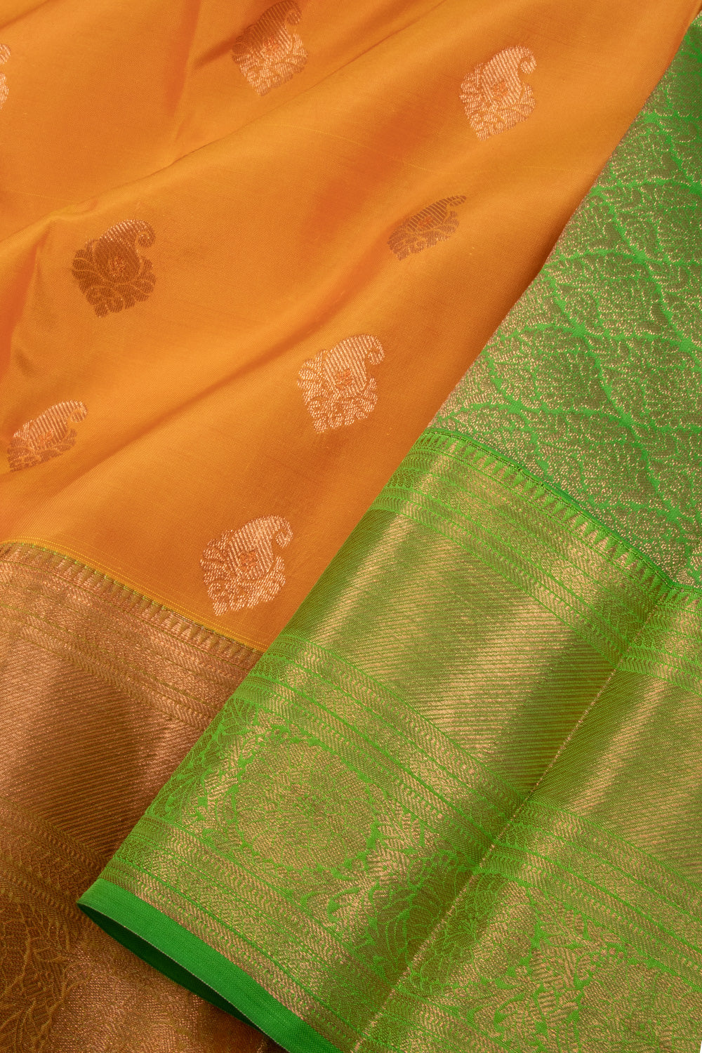 Elevate your style with our Yellow Kanjivaram Vegan Silk Saree! Made with the Vegan silk, this saree showcases a beautiful Yellow color that will make you stand out on any occasion. The intricate work adds a touch of elegance, ...
